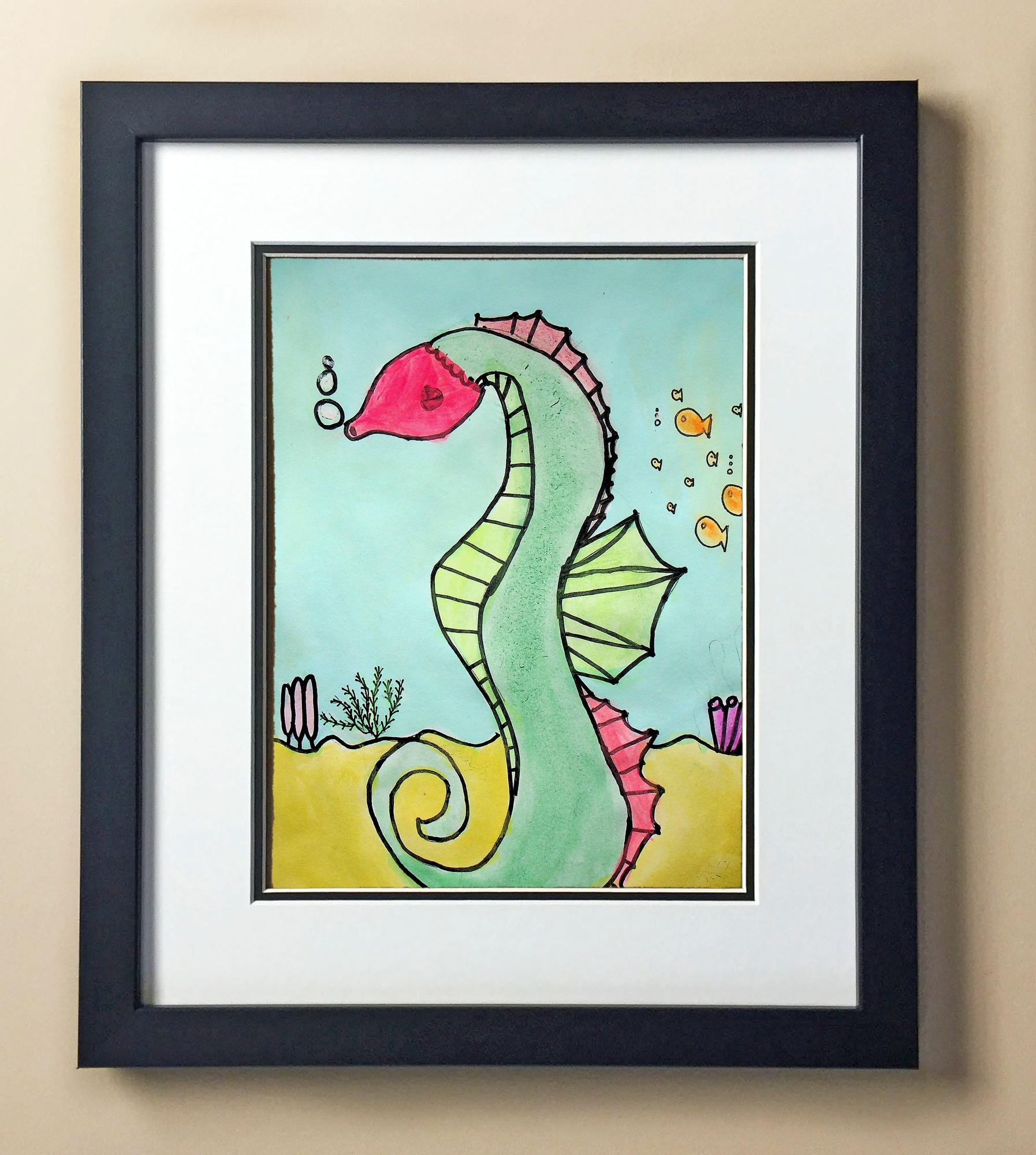 Included with the purchase is the Students Artwork, Frame, double matboard, shatter proof plexiglass, and a ready to hang backerboard with turnbuttons