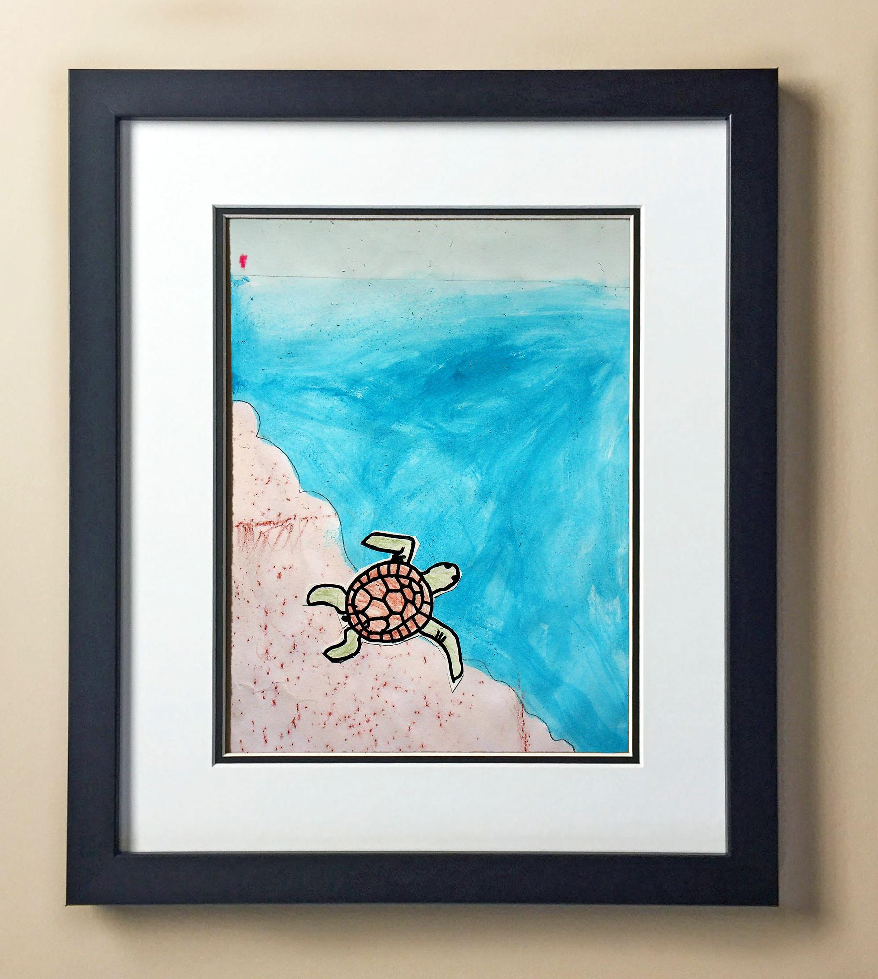 Included with the purchase is the Students Artwork, Frame, double matboard, shatter proof plexiglass, and a ready to hang backerboard with turnbuttons