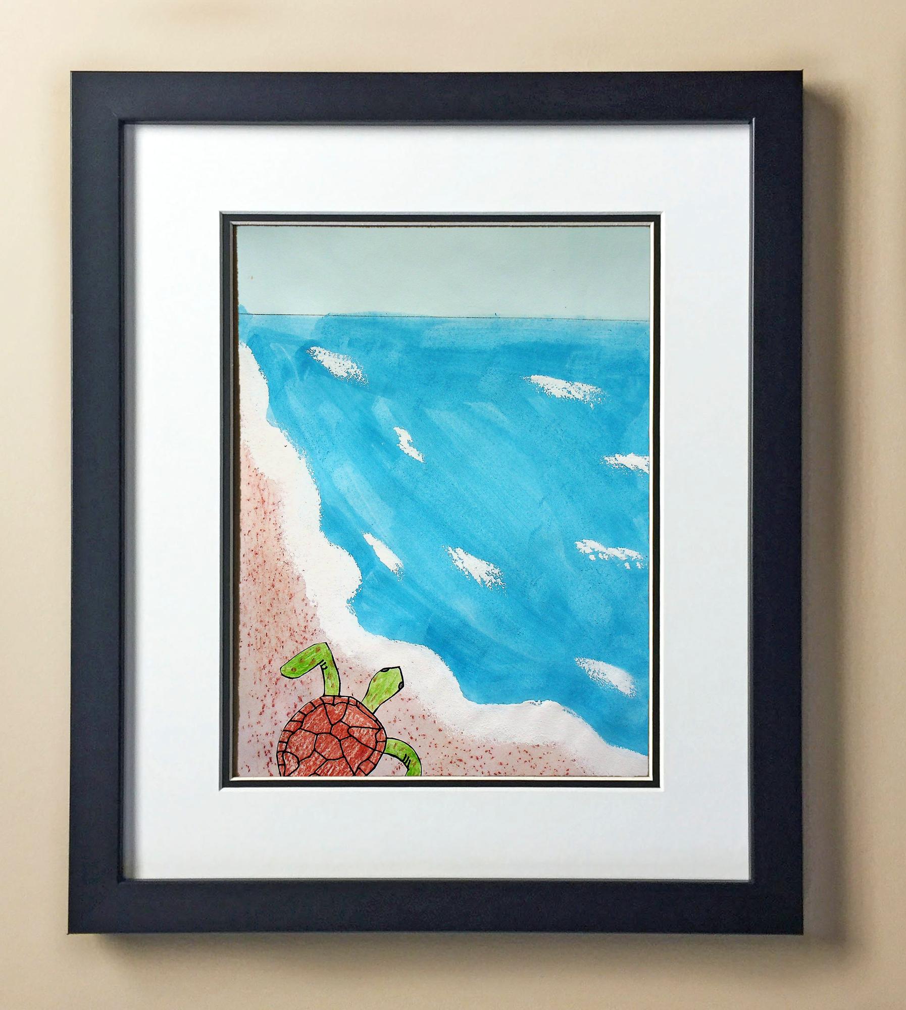 Included with the purchase is the Students Artwork, Frame, double matboard, shatter proof plexiglass, and a ready to hang backerboard with turnbuttons