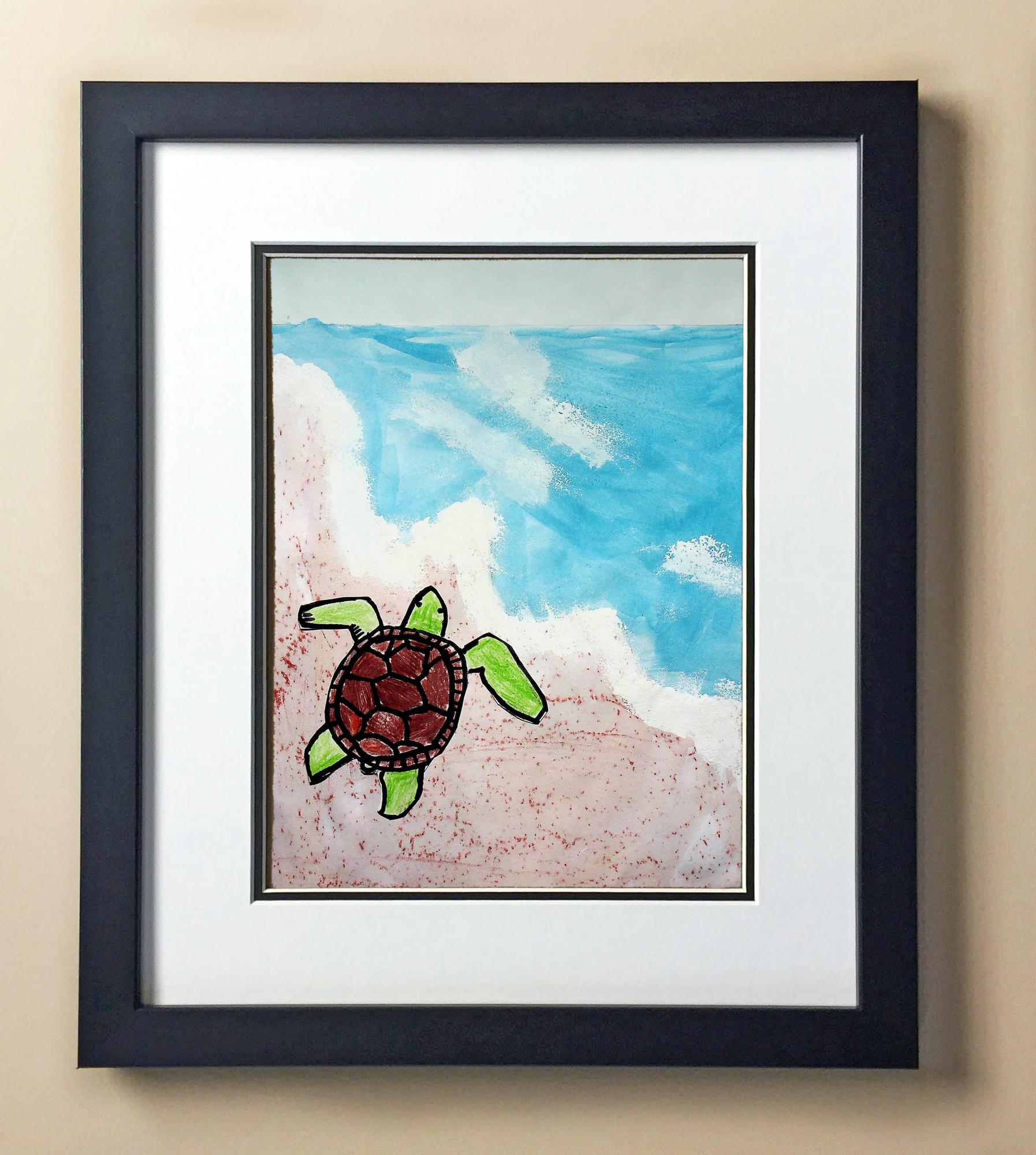 Included with the purchase is the Students Artwork, Frame, double matboard, shatter proof plexiglass, and a ready to hang backerboard with turnbuttons