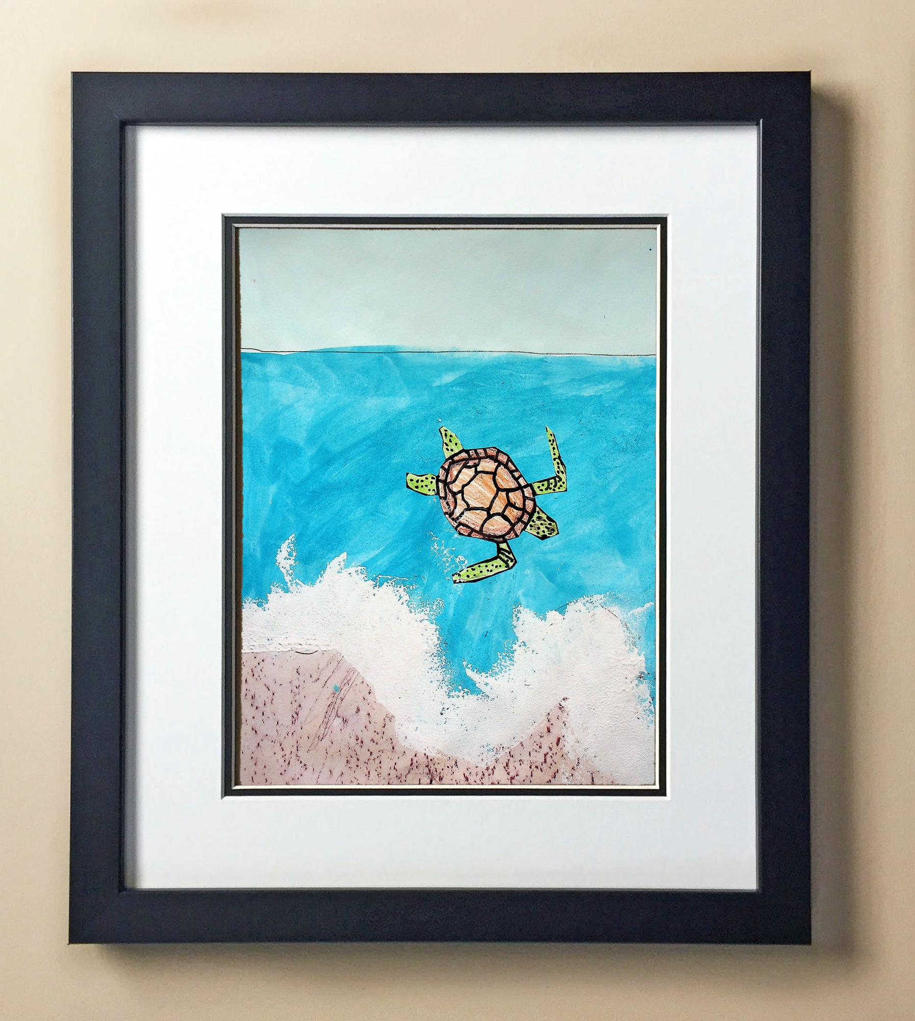 Included with the purchase is the Students Artwork, Frame, double matboard, shatter proof plexiglass, and a ready to hang backerboard with turnbuttons