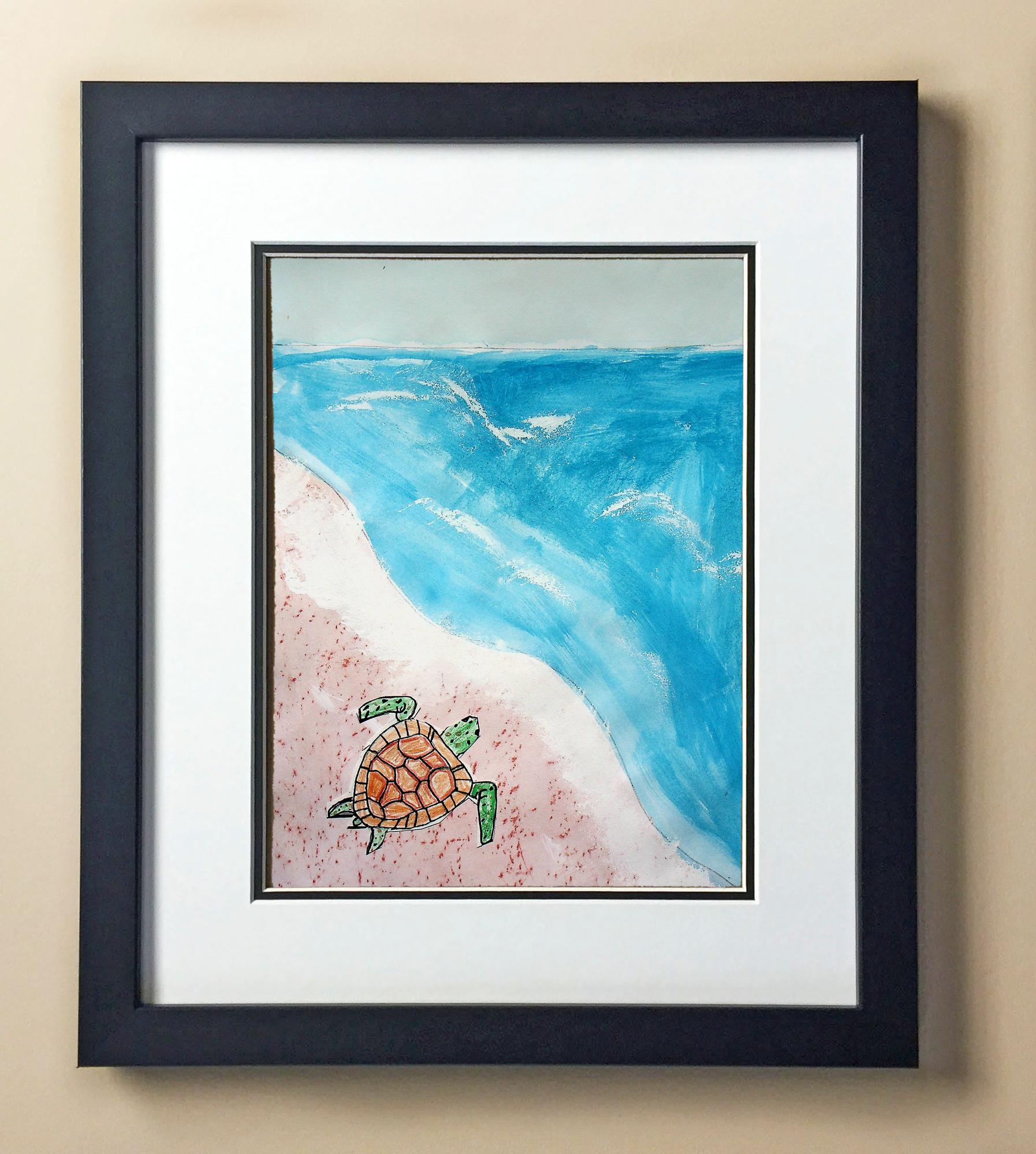 Included with the purchase is the Students Artwork, Frame, double matboard, shatter proof plexiglass, and a ready to hang backerboard with turnbuttons