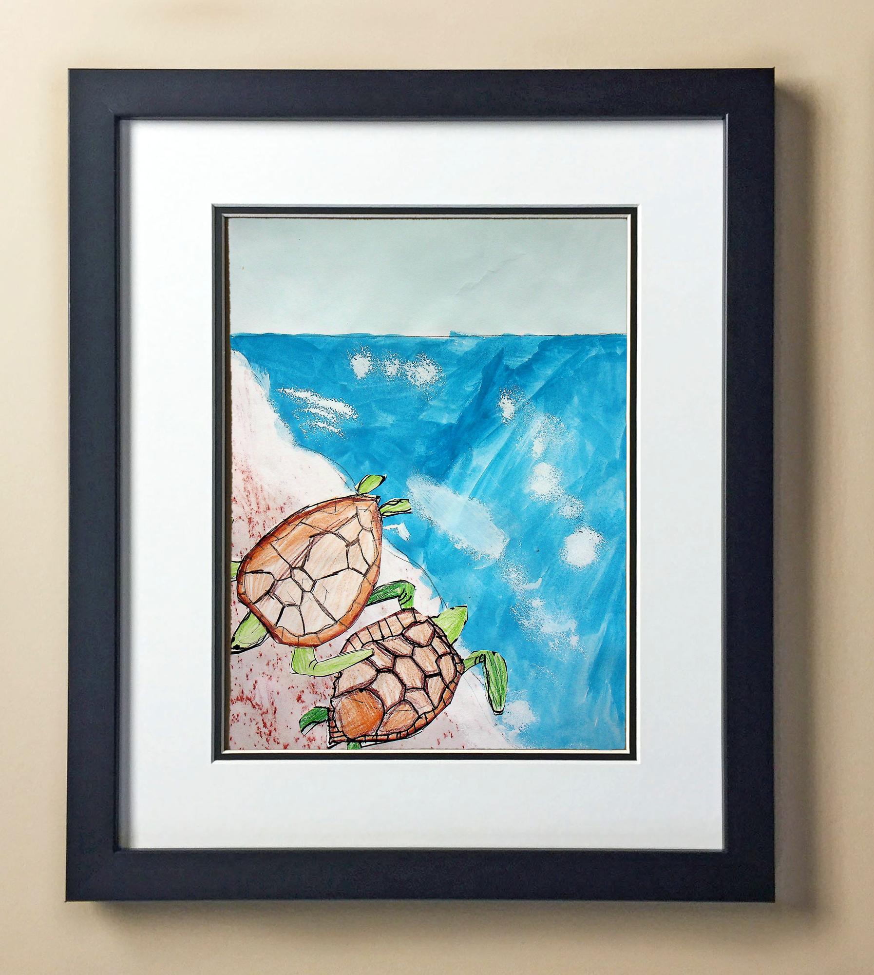 Included with the purchase is the Students Artwork, Frame, double matboard, shatter proof plexiglass, and a ready to hang backerboard with turnbuttons