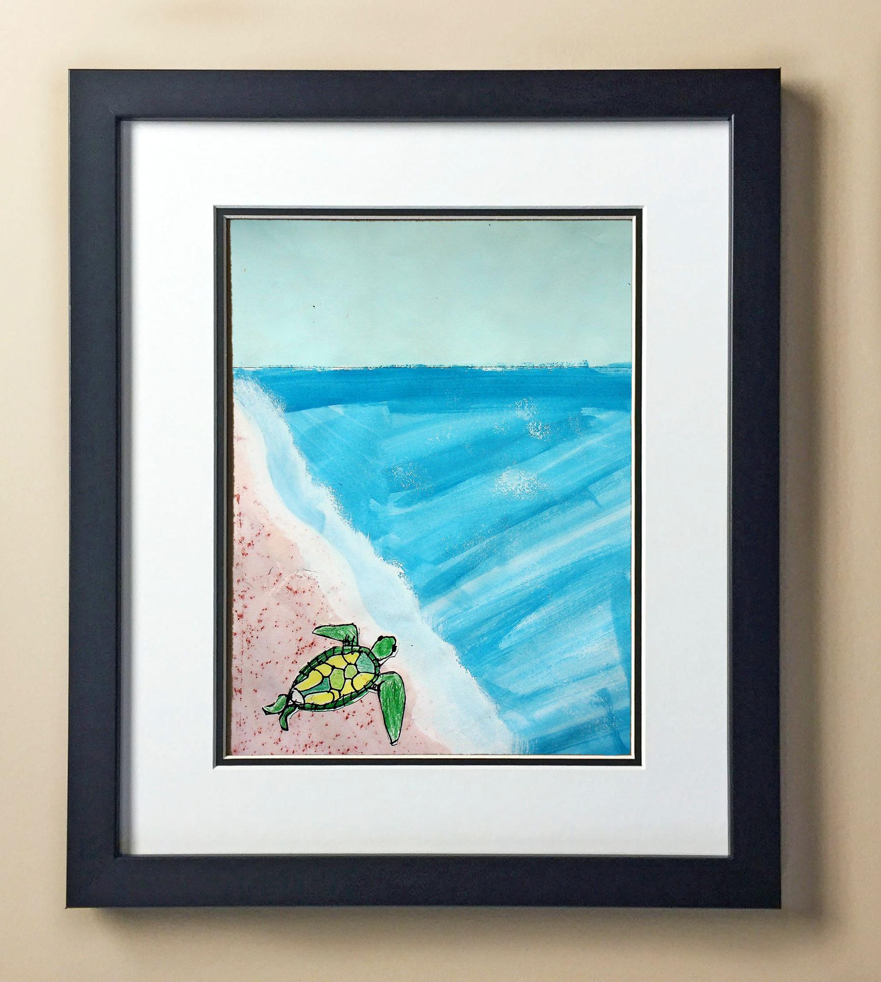 Included with the purchase is the Students Artwork, Frame, double matboard, shatter proof plexiglass, and a ready to hang backerboard with turnbuttons