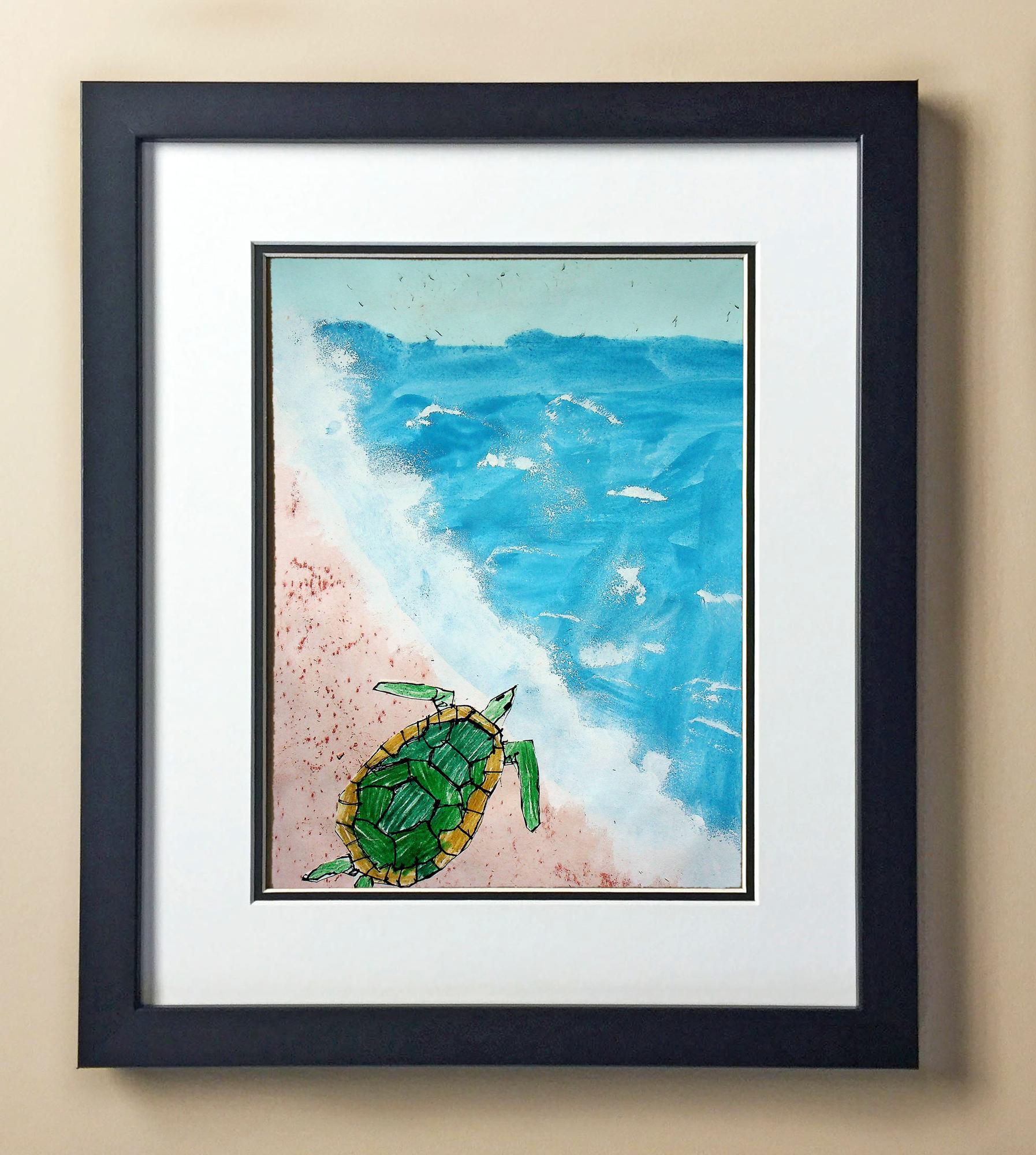 Included with the purchase is the Students Artwork, Frame, double matboard, shatter proof plexiglass, and a ready to hang backerboard with turnbuttons