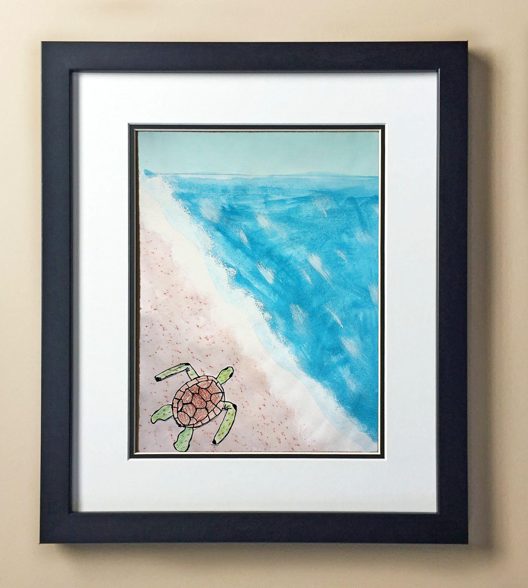 Included with the purchase is the Students Artwork, Frame, double matboard, shatter proof plexiglass, and a ready to hang backerboard with turnbuttons