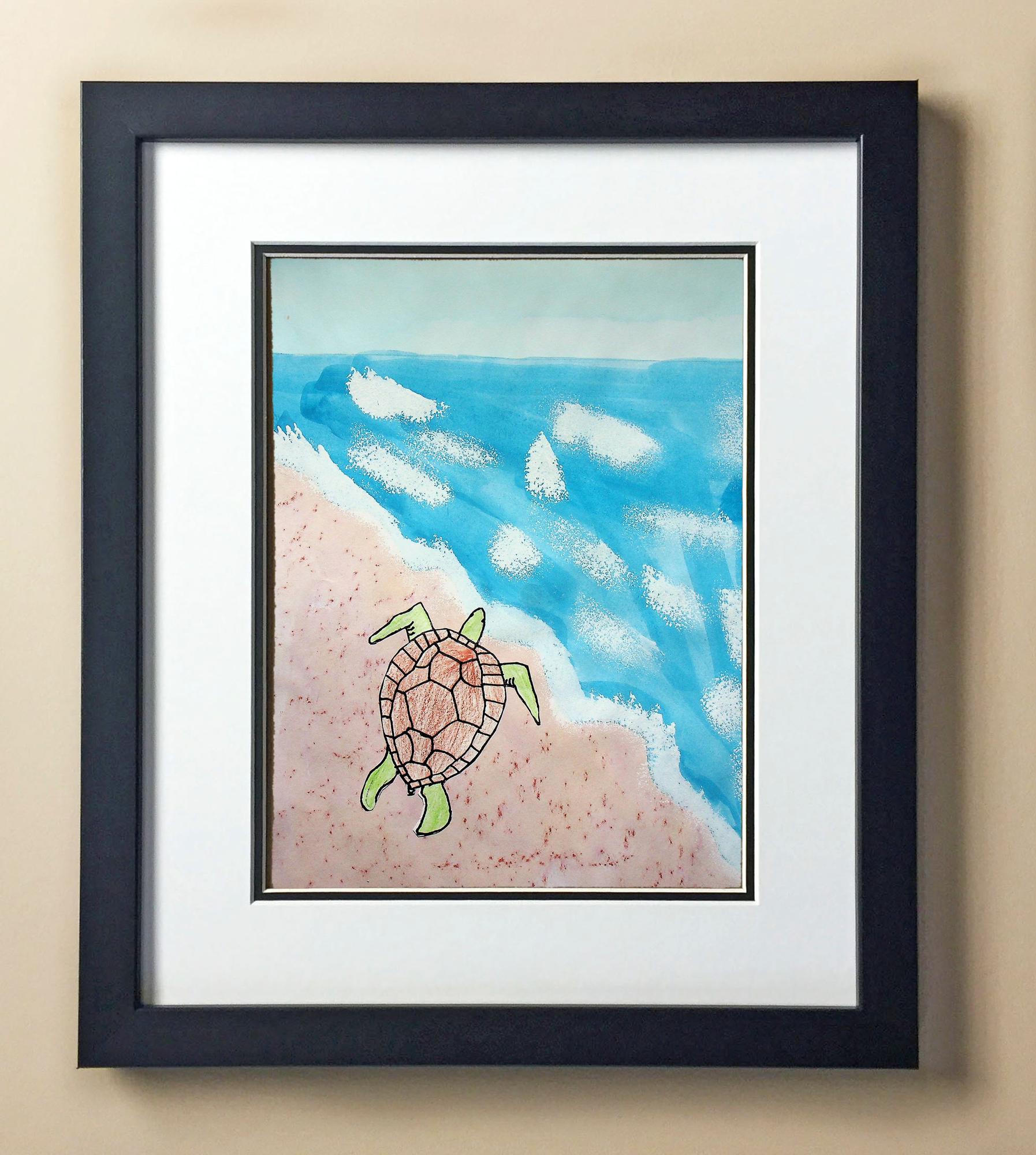 Included with the purchase is the Students Artwork, Frame, double matboard, shatter proof plexiglass, and a ready to hang backerboard with turnbuttons