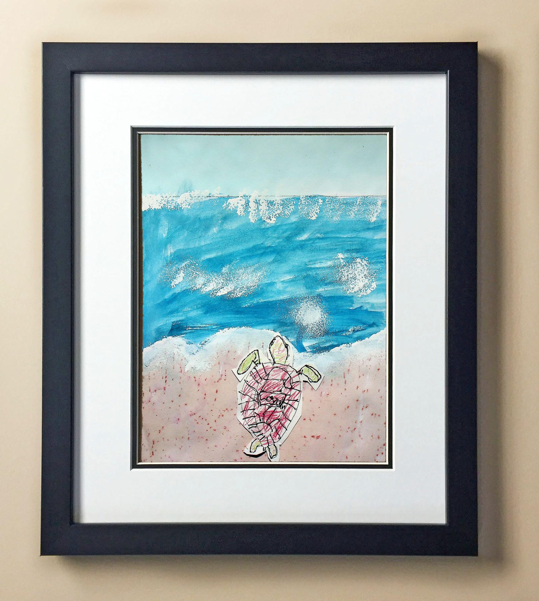 Included with the purchase is the Students Artwork, Frame, double matboard, shatter proof plexiglass, and a ready to hang backerboard with turnbuttons
