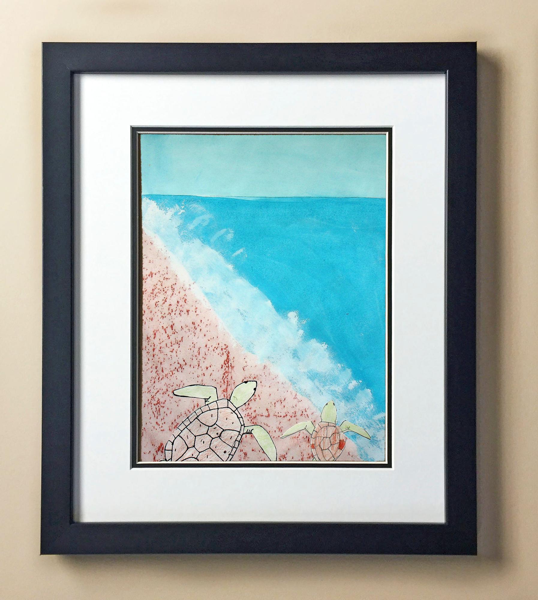 Included with the purchase is the Students Artwork, Frame, double matboard, shatter proof plexiglass, and a ready to hang backerboard with turnbuttons