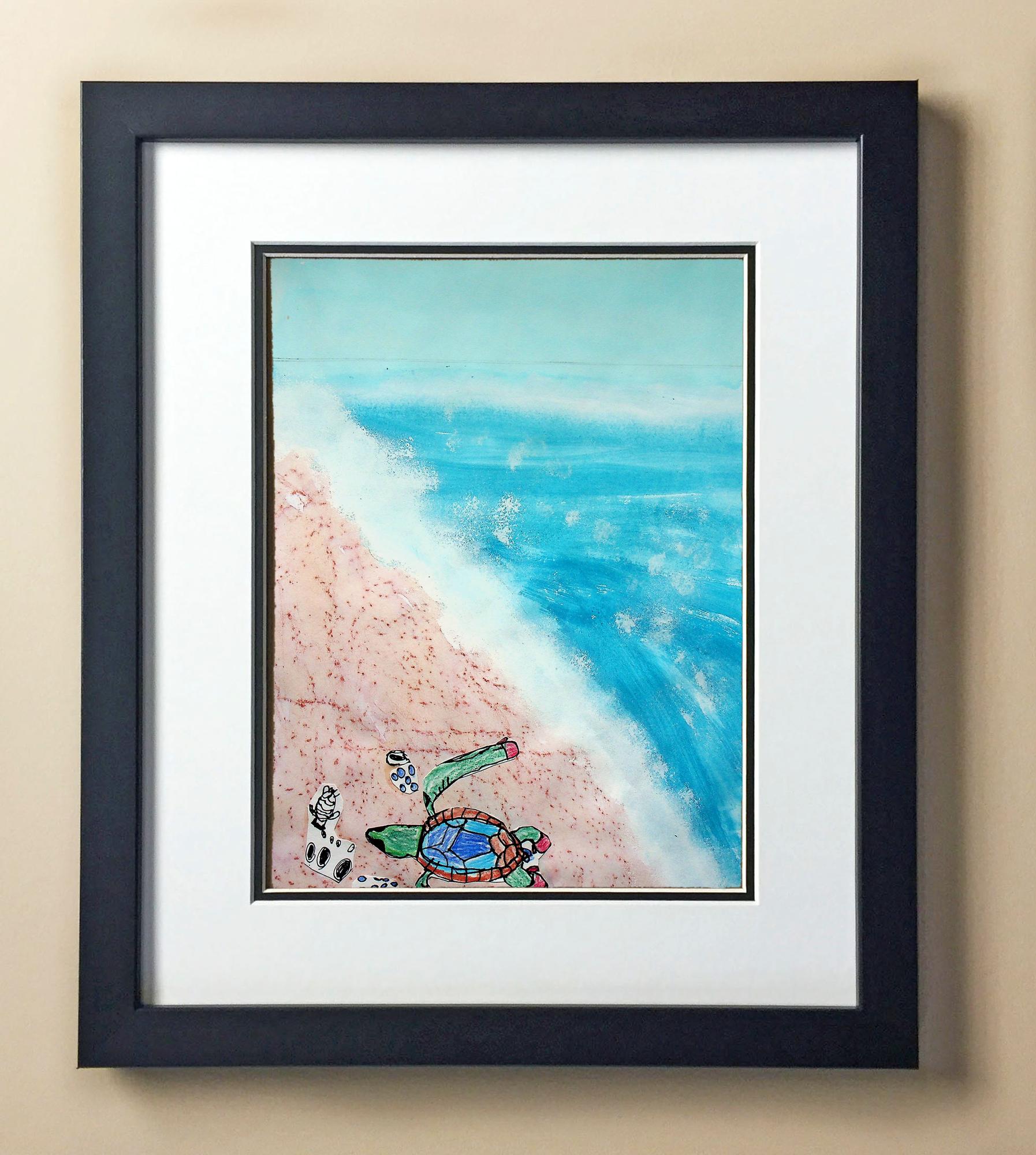 Included with the purchase is the Students Artwork, Frame, double matboard, shatter proof plexiglass, and a ready to hang backerboard with turnbuttons