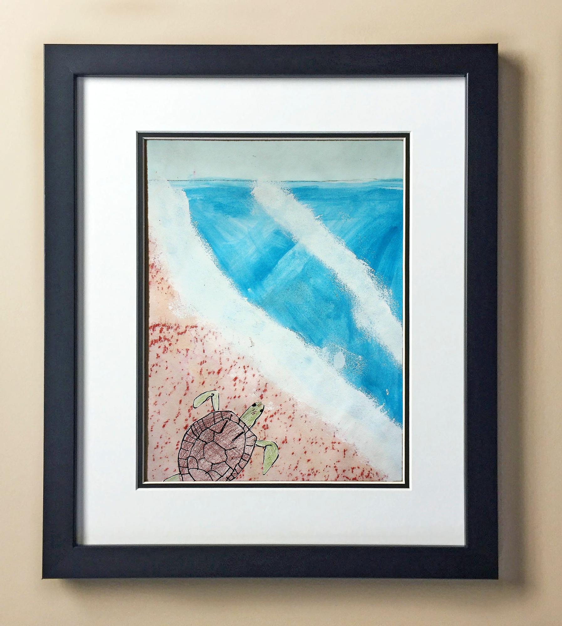 Included with the purchase is the Students Artwork, Frame, double matboard, shatter proof plexiglass, and a ready to hang backerboard with turnbuttons