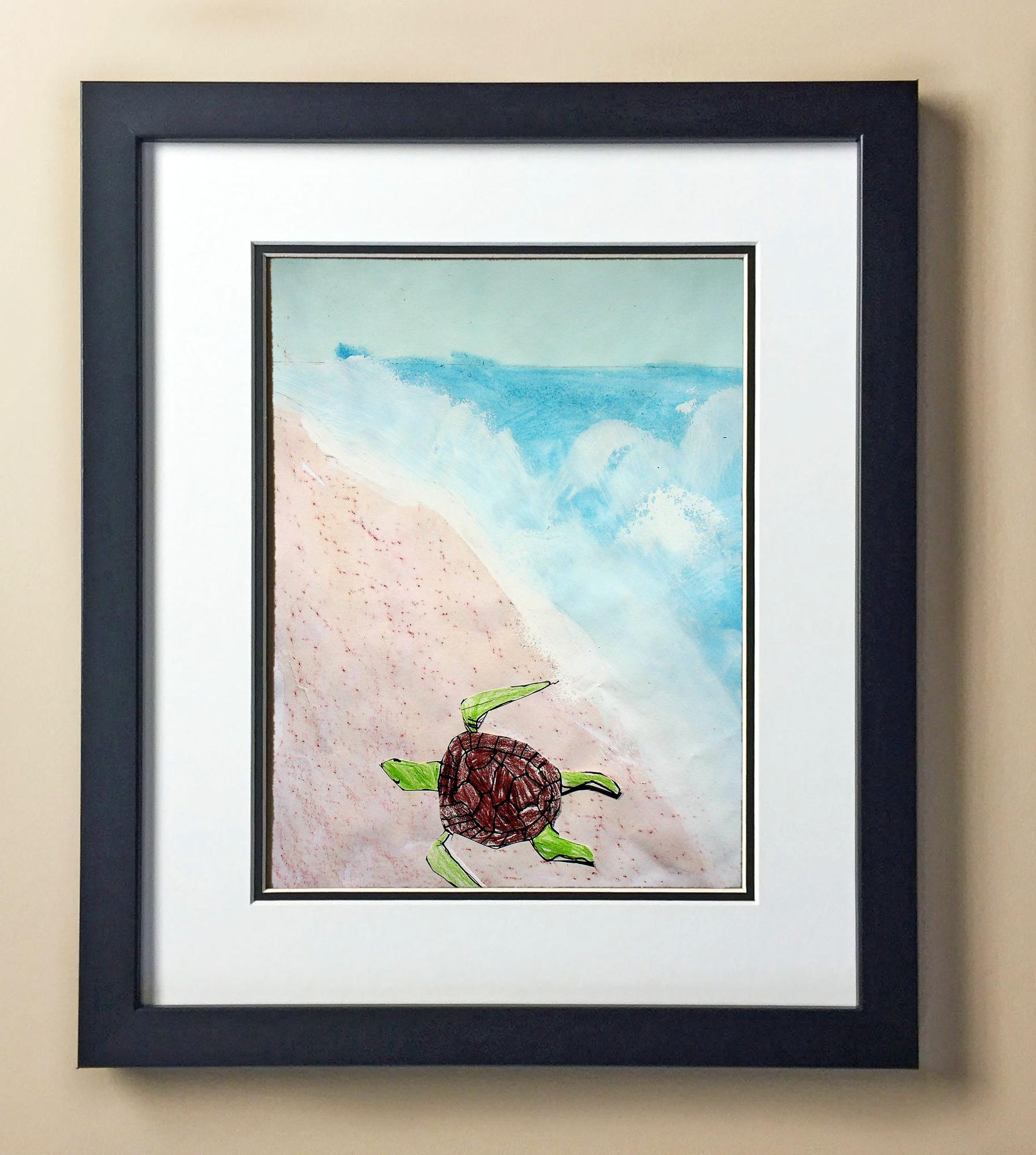 Included with the purchase is the Students Artwork, Frame, double matboard, shatter proof plexiglass, and a ready to hang backerboard with turnbuttons