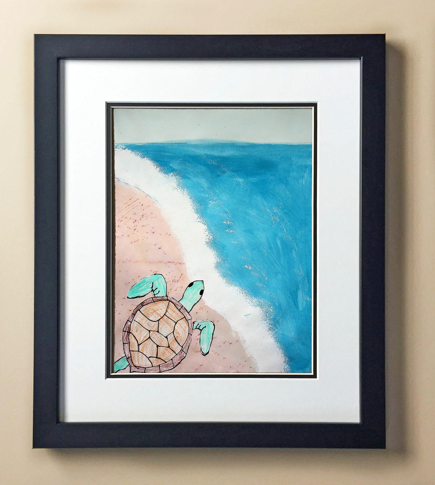Included with the purchase is the Students Artwork, Frame, double matboard, shatter proof plexiglass, and a ready to hang backerboard with turnbuttons