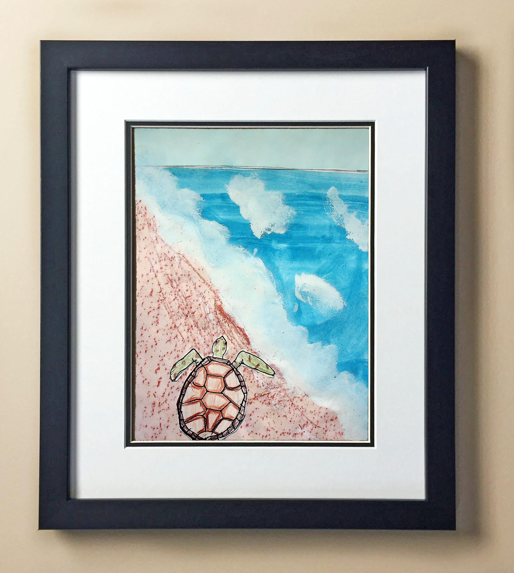Included with the purchase is the Students Artwork, Frame, double matboard, shatter proof plexiglass, and a ready to hang backerboard with turnbuttons