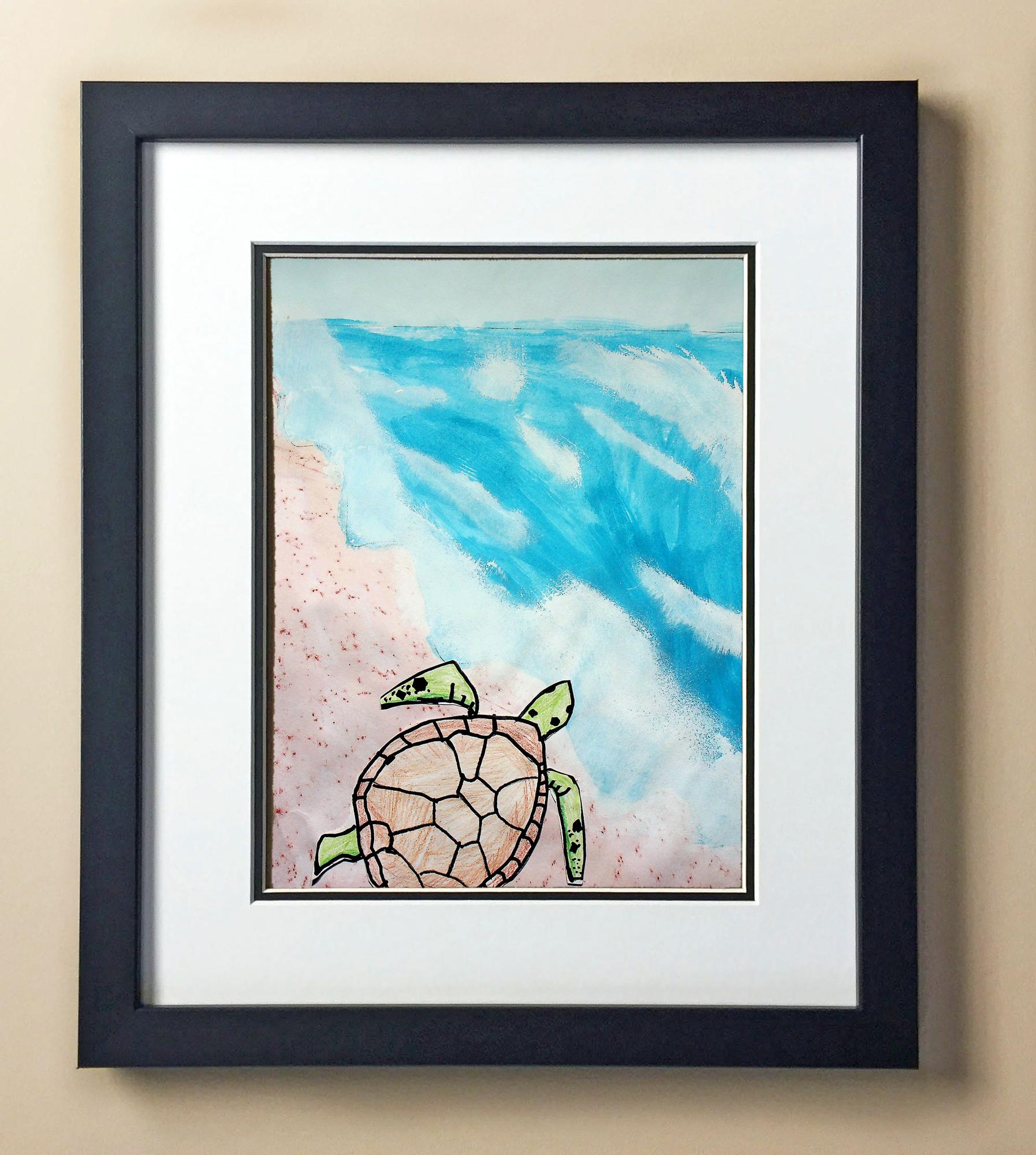 Included with the purchase is the Students Artwork, Frame, double matboard, shatter proof plexiglass, and a ready to hang backerboard with turnbuttons
