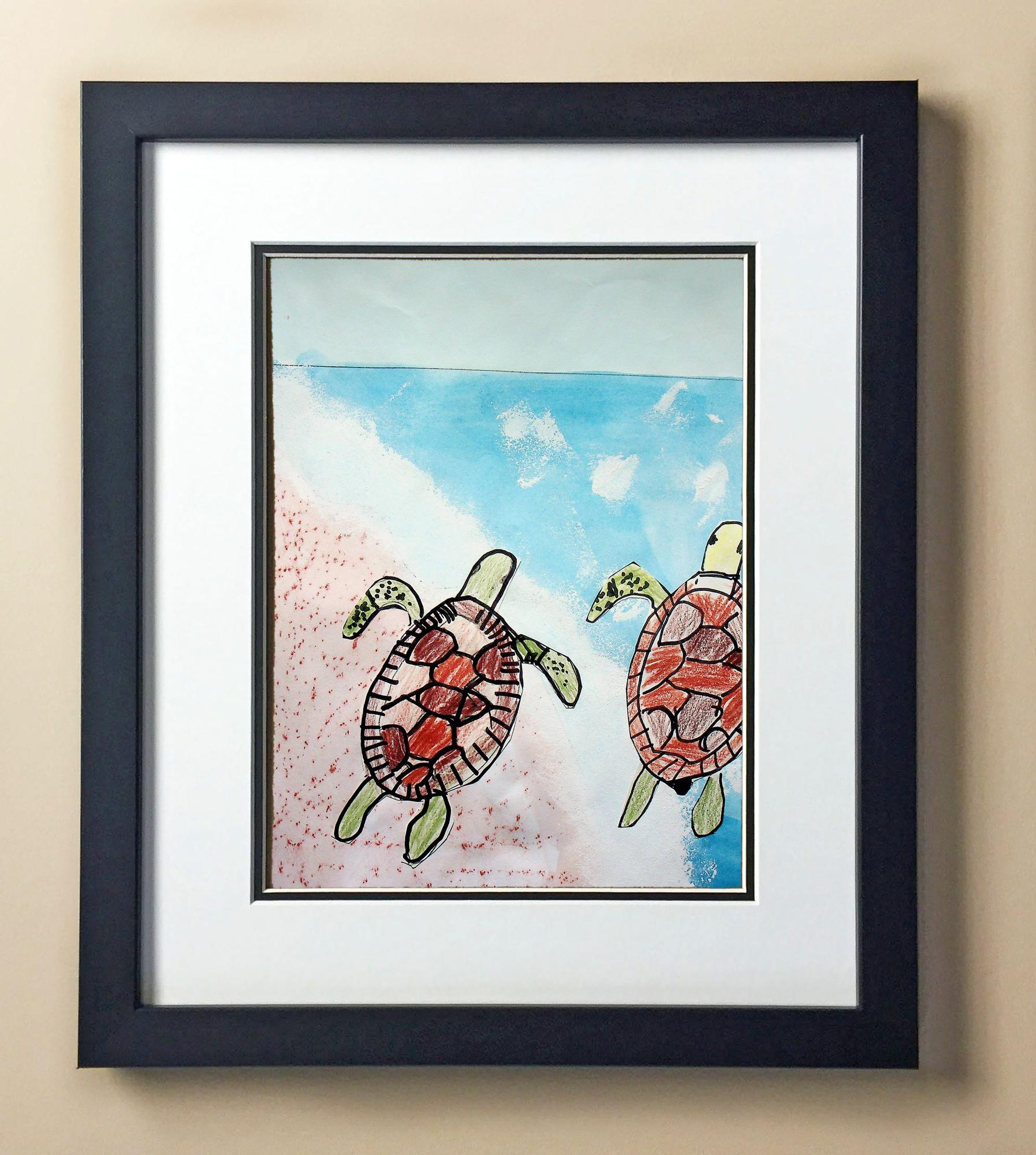 Included with the purchase is the Students Artwork, Frame, double matboard, shatter proof plexiglass, and a ready to hang backerboard with turnbuttons