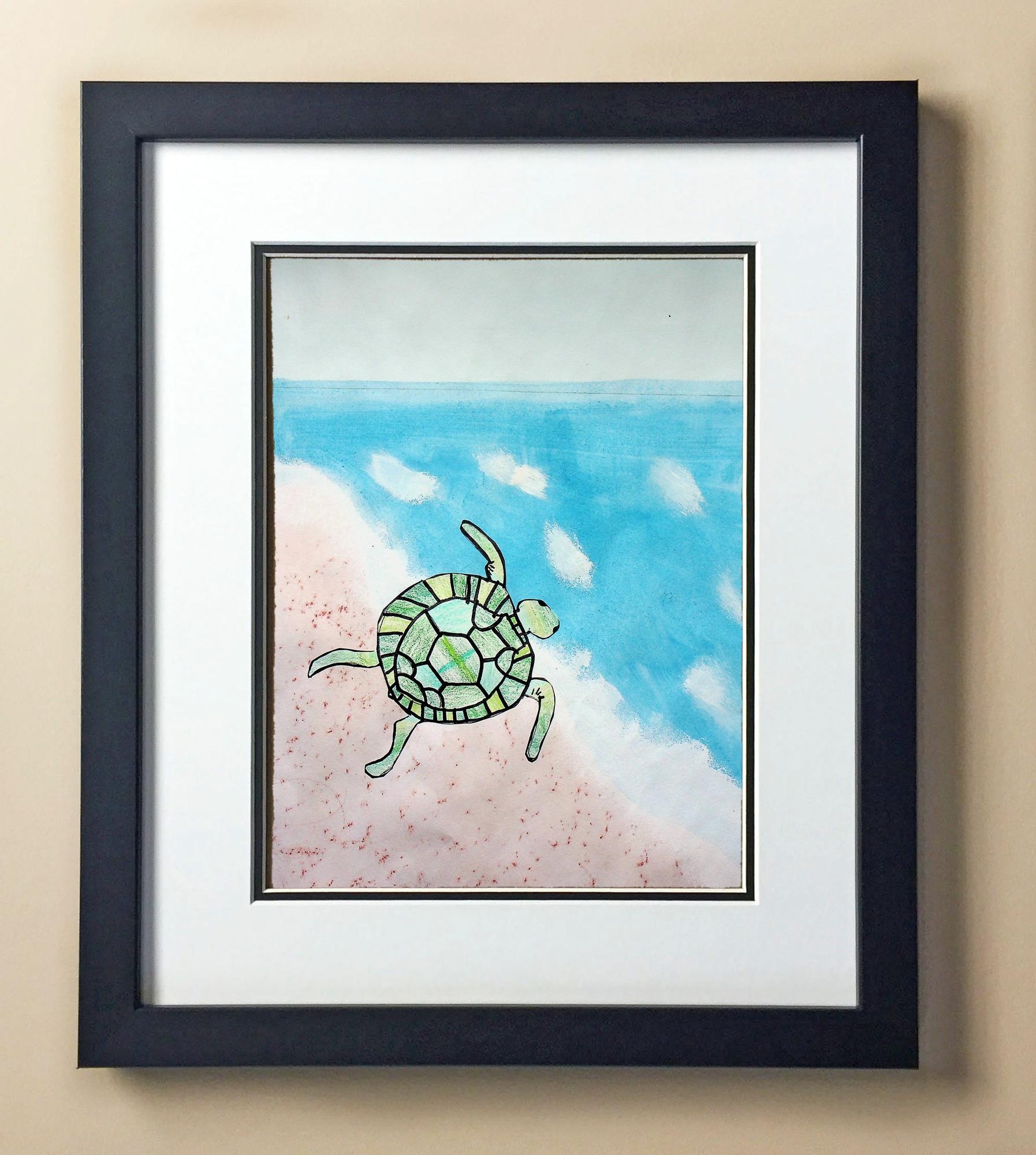 Included with the purchase is the Students Artwork, Frame, double matboard, shatter proof plexiglass, and a ready to hang backerboard with turnbuttons