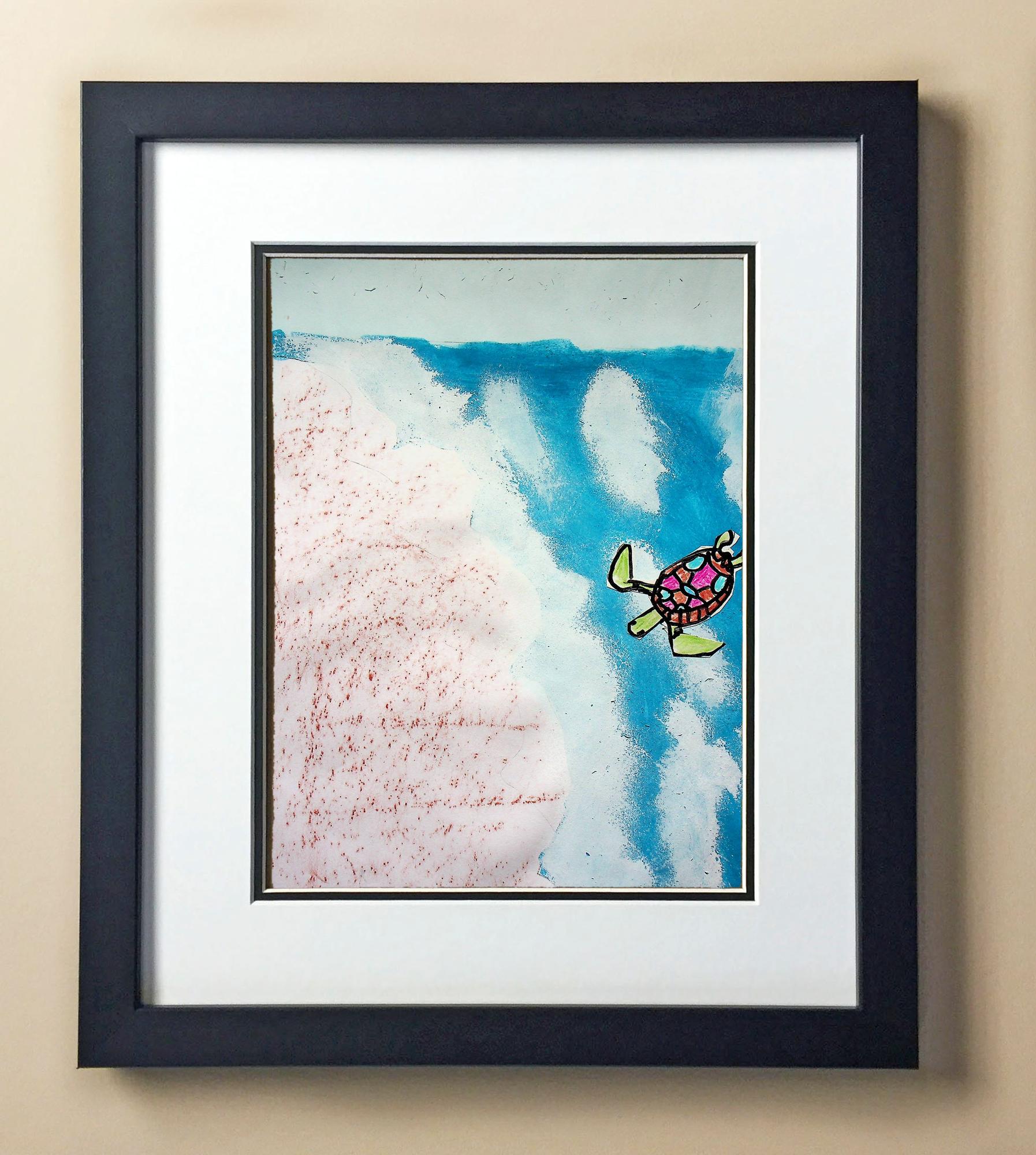 Included with the purchase is the Students Artwork, Frame, double matboard, shatter proof plexiglass, and a ready to hang backerboard with turnbuttons