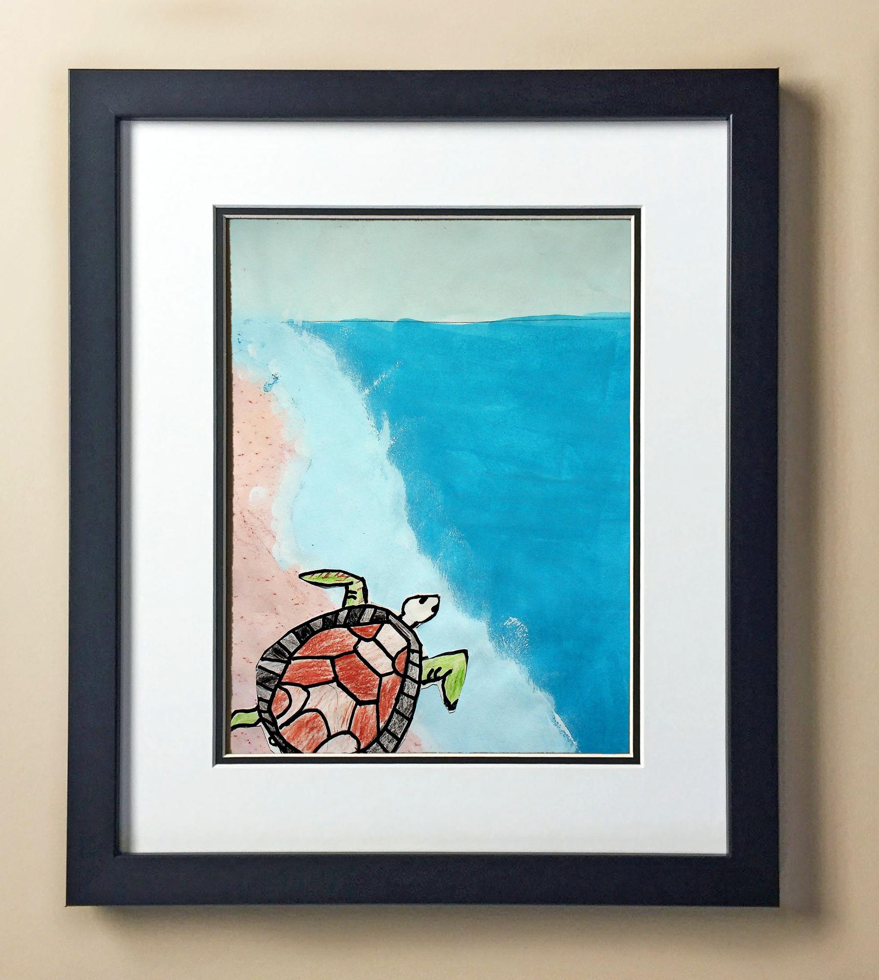 Included with the purchase is the Students Artwork, Frame, double matboard, shatter proof plexiglass, and a ready to hang backerboard with turnbuttons