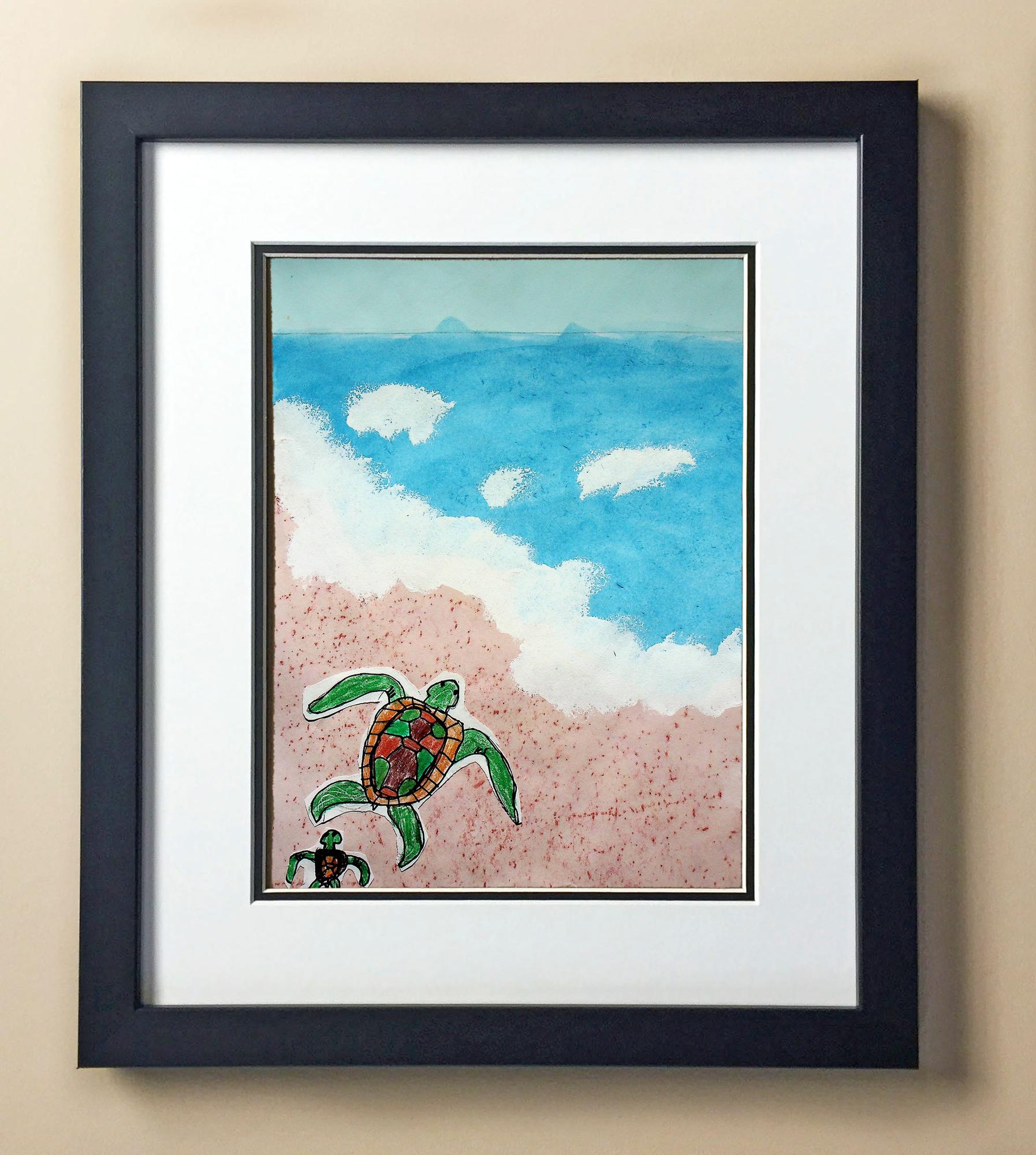 Included with the purchase is the Students Artwork, Frame, double matboard, shatter proof plexiglass, and a ready to hang backerboard with turnbuttons