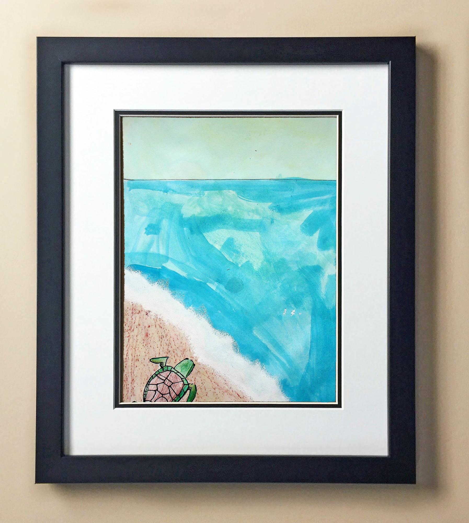 Included with the purchase is the Students Artwork, Frame, double matboard, shatter proof plexiglass, and a ready to hang backerboard with turnbuttons