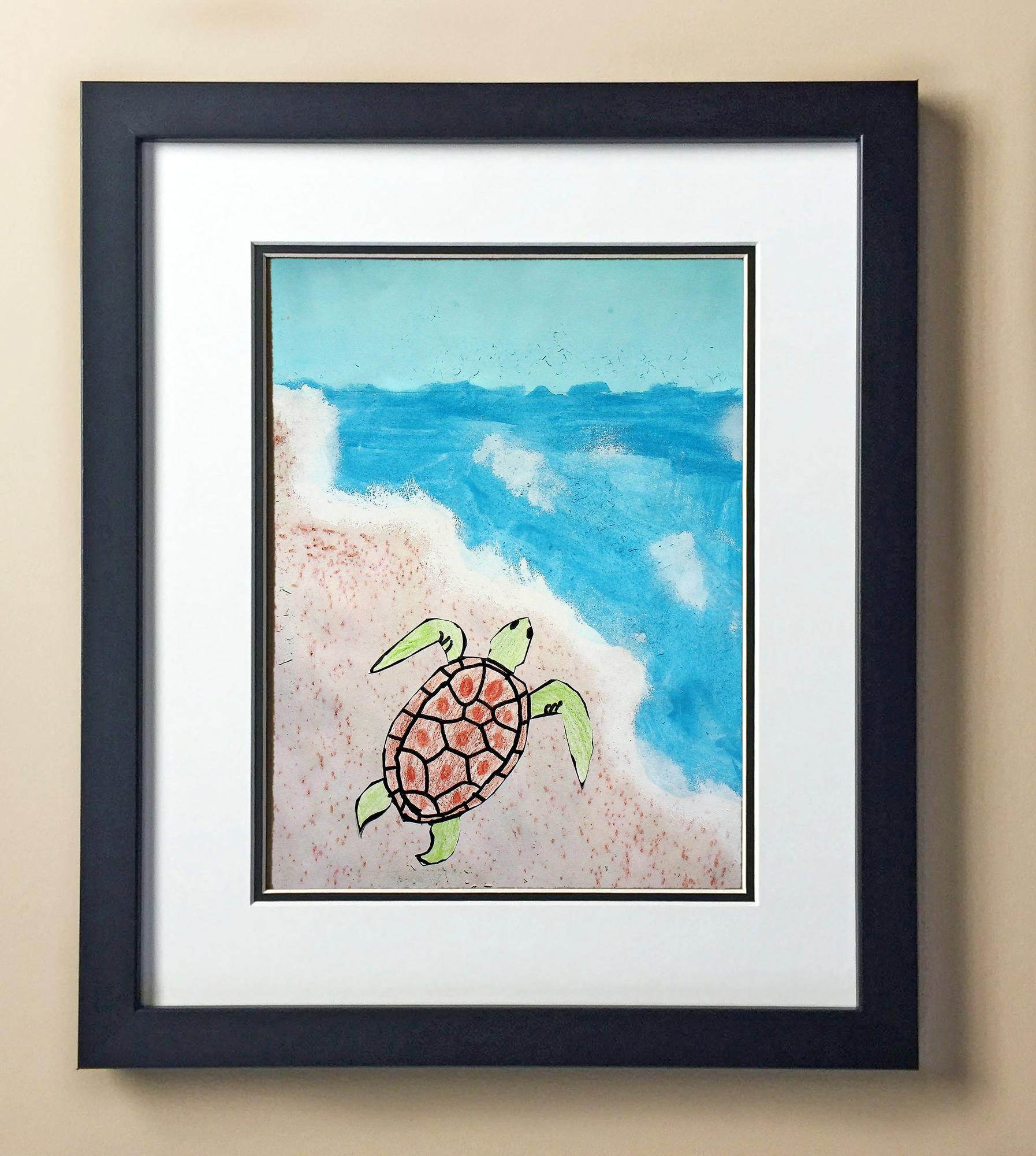 Included with the purchase is the Students Artwork, Frame, double matboard, shatter proof plexiglass, and a ready to hang backerboard with turnbuttons