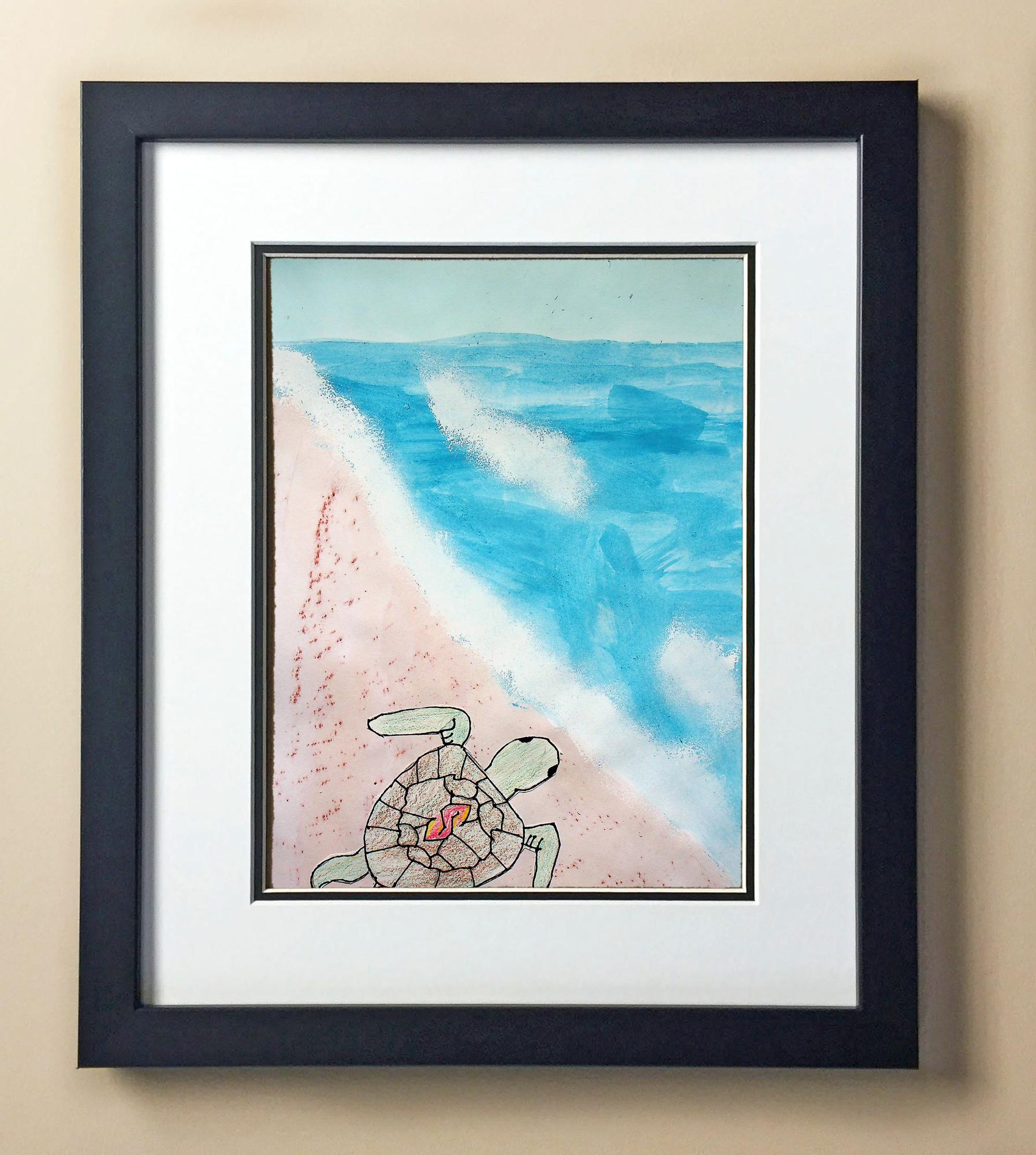 Included with the purchase is the Students Artwork, Frame, double matboard, shatter proof plexiglass, and a ready to hang backerboard with turnbuttons