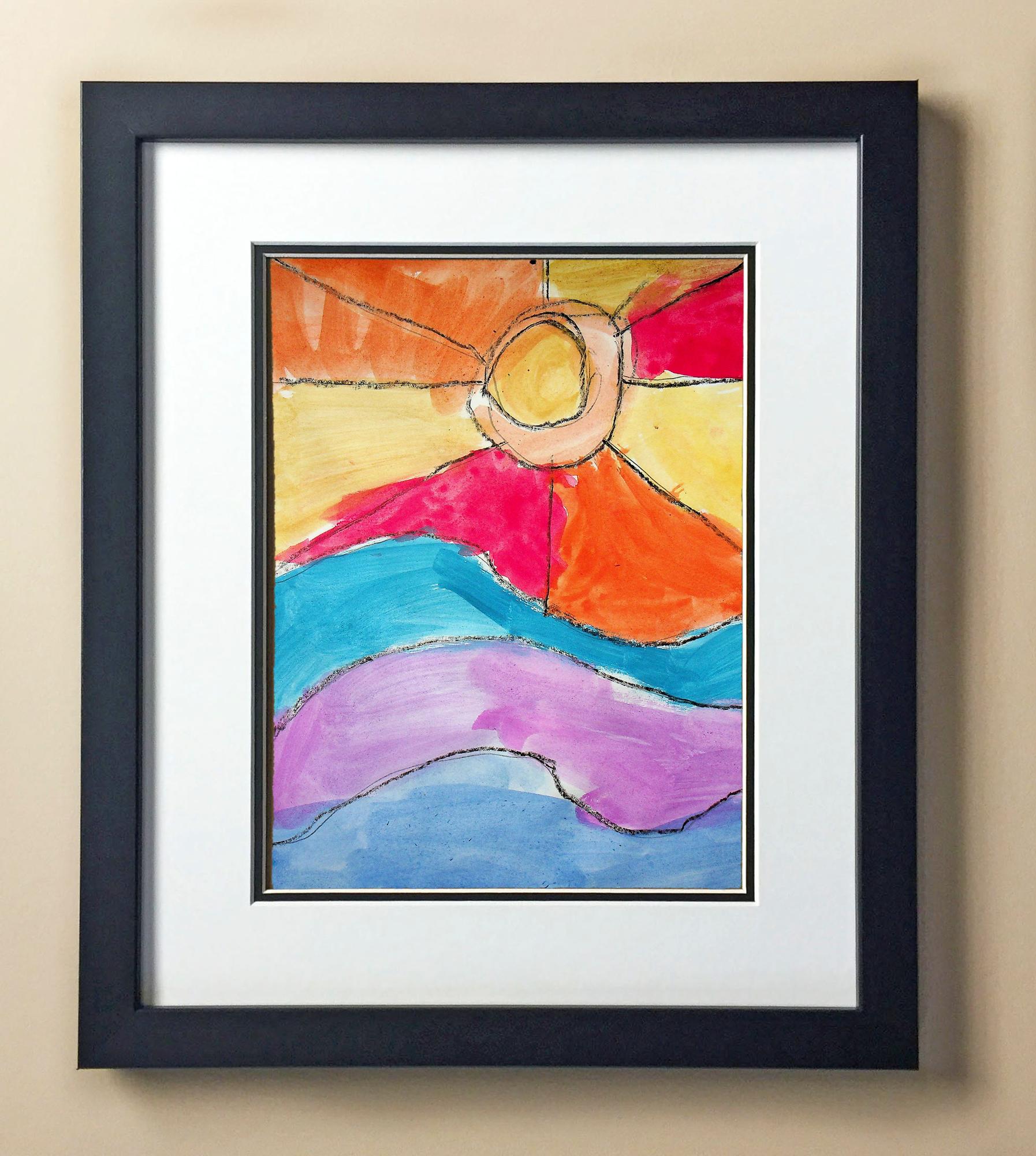 Included with the purchase is the Students Artwork, Frame, double matboard, shatter proof plexiglass, and a ready to hang backerboard with turnbuttons