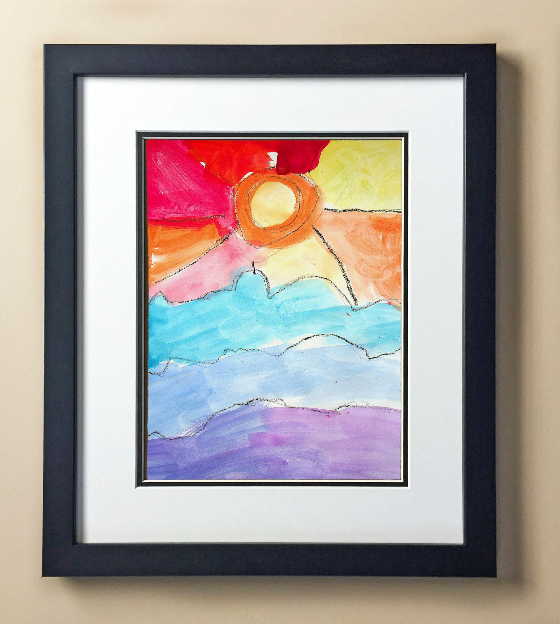 Included with the purchase is the Students Artwork, Frame, double matboard, shatter proof plexiglass, and a ready to hang backerboard with turnbuttons