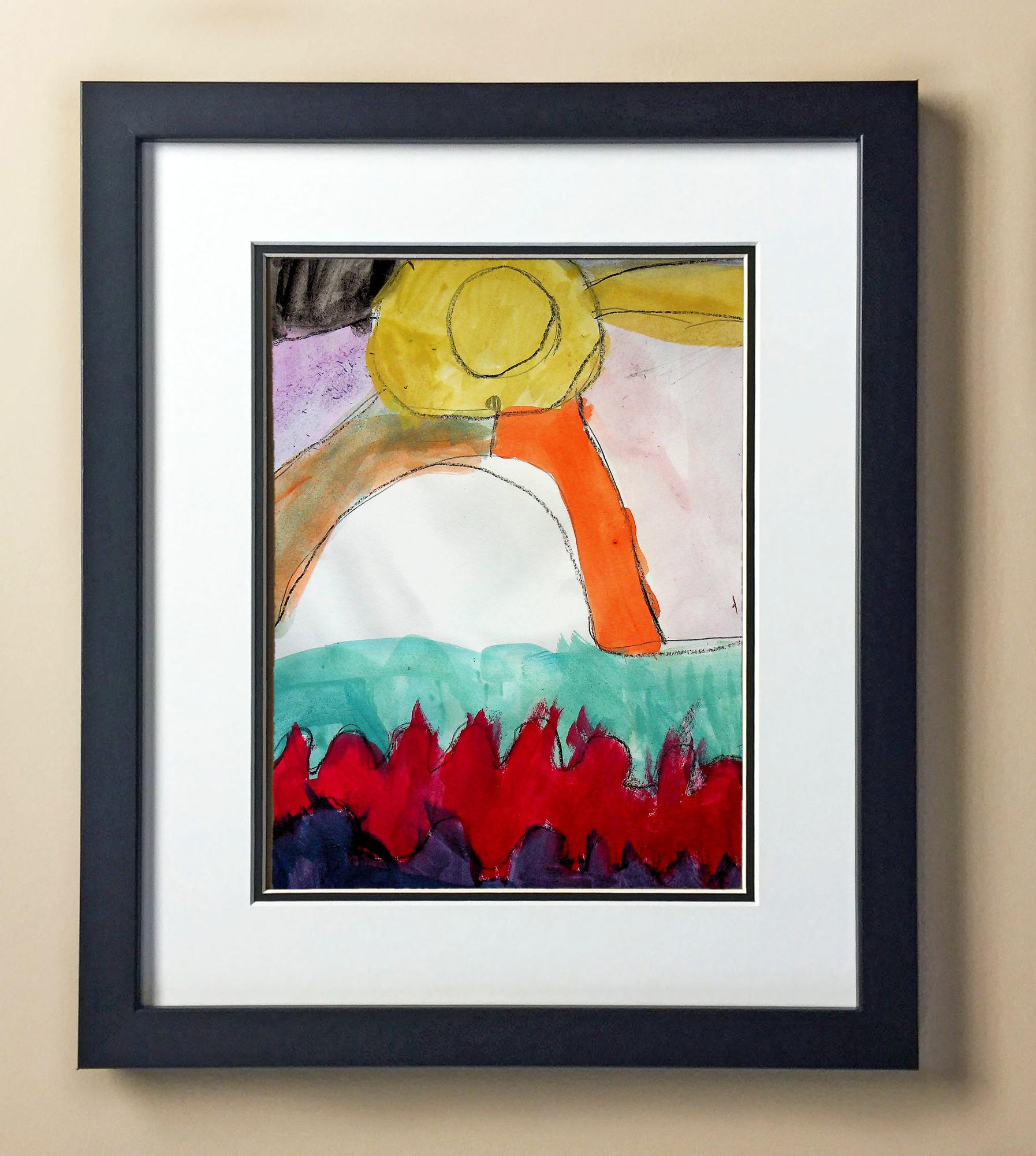 Included with the purchase is the Students Artwork, Frame, double matboard, shatter proof plexiglass, and a ready to hang backerboard with turnbuttons