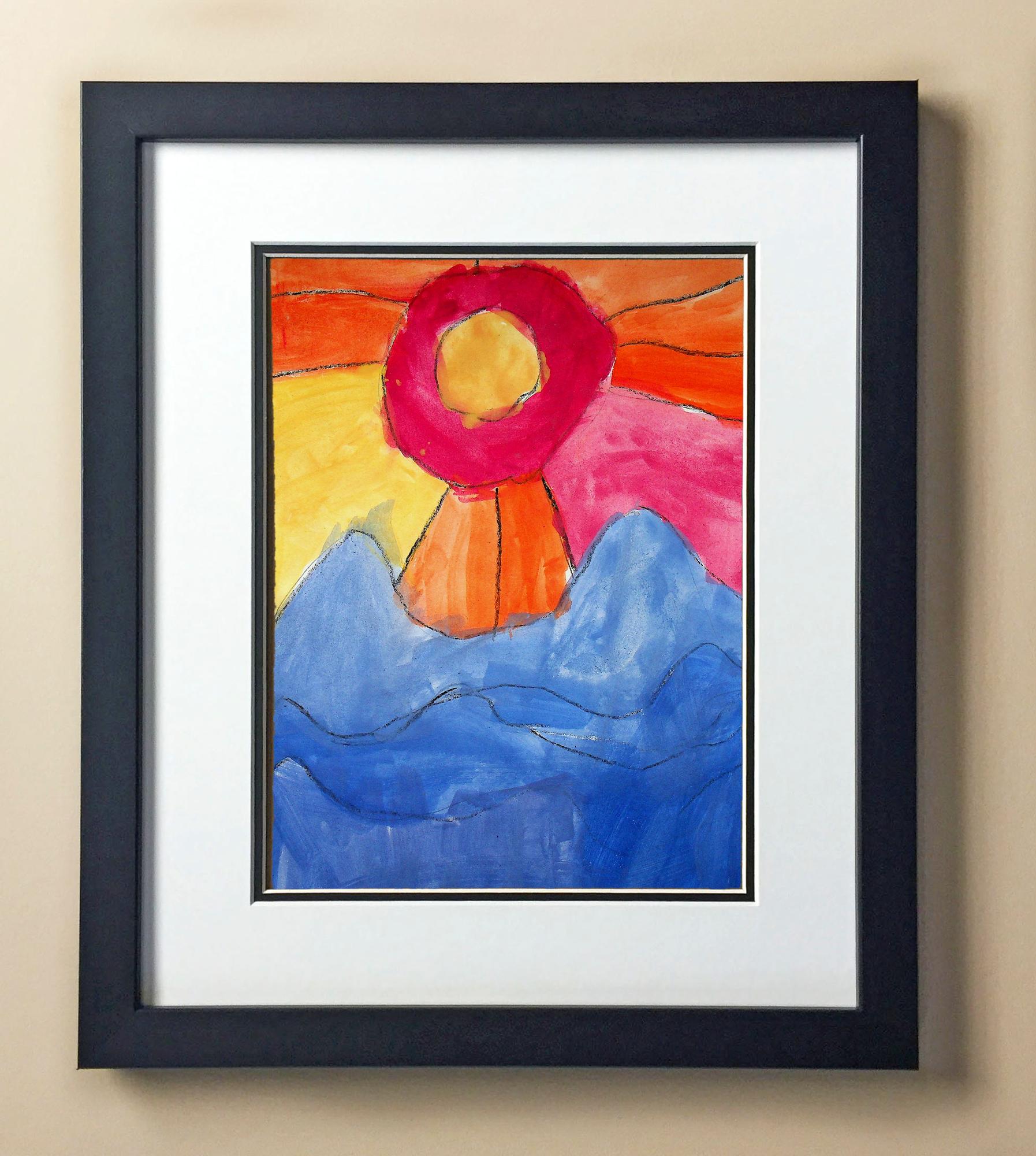 Included with the purchase is the Students Artwork, Frame, double matboard, shatter proof plexiglass, and a ready to hang backerboard with turnbuttons