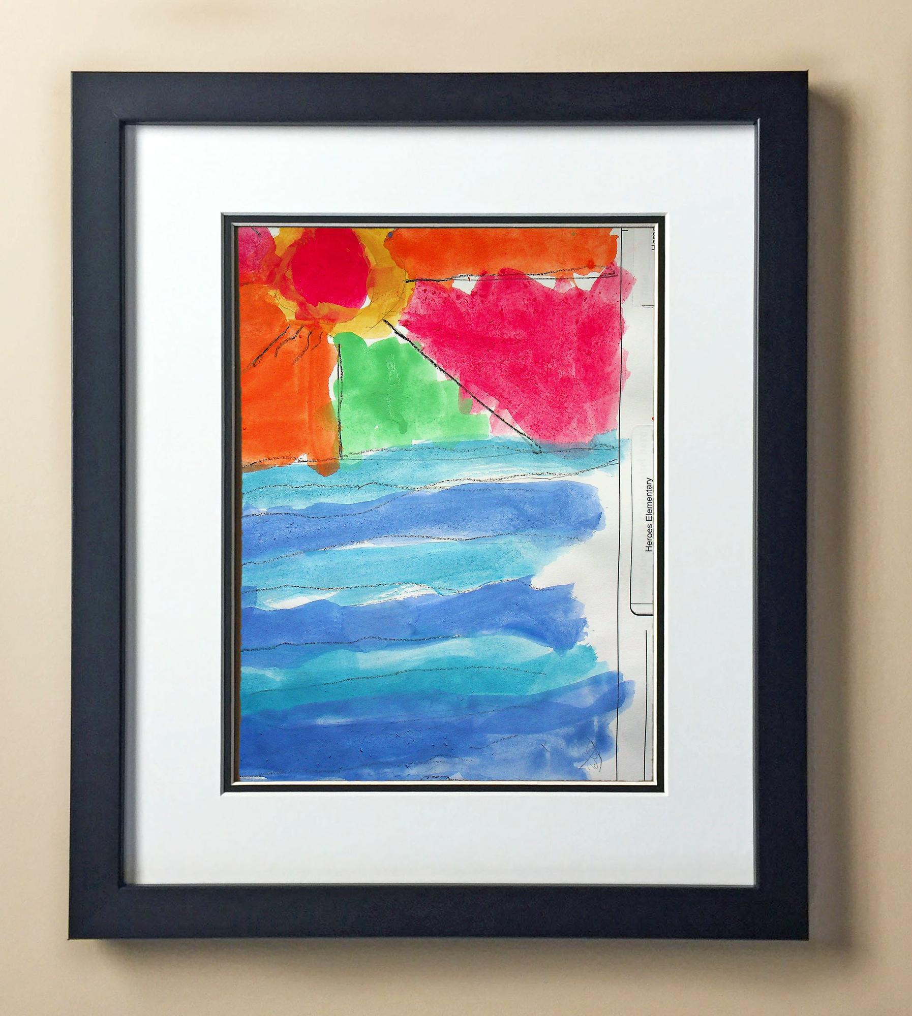 Included with the purchase is the Students Artwork, Frame, double matboard, shatter proof plexiglass, and a ready to hang backerboard with turnbuttons