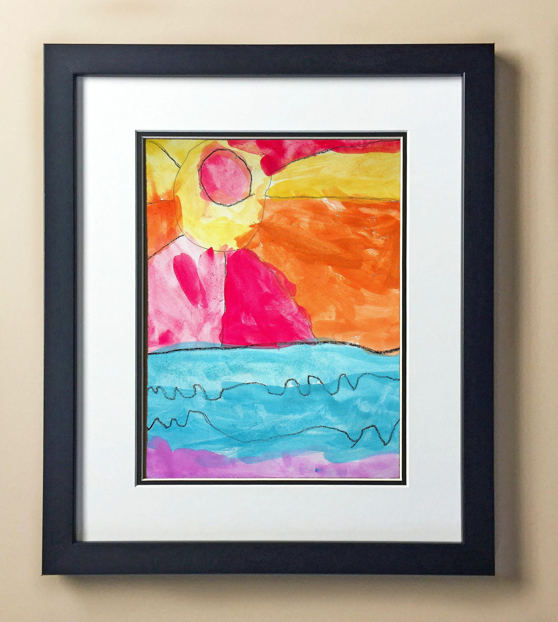 Included with the purchase is the Students Artwork, Frame, double matboard, shatter proof plexiglass, and a ready to hang backerboard with turnbuttons