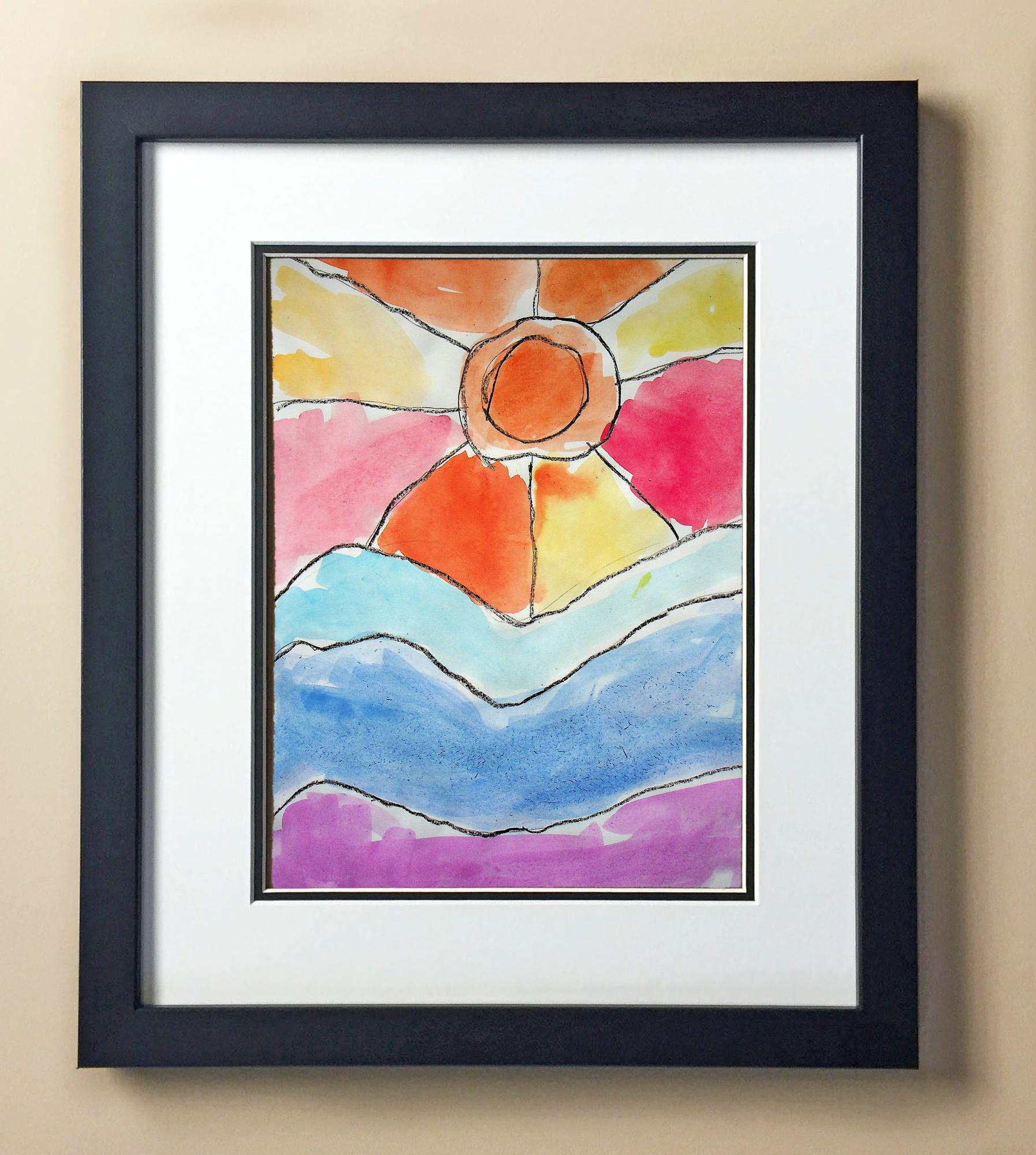 Included with the purchase is the Students Artwork, Frame, double matboard, shatter proof plexiglass, and a ready to hang backerboard with turnbuttons