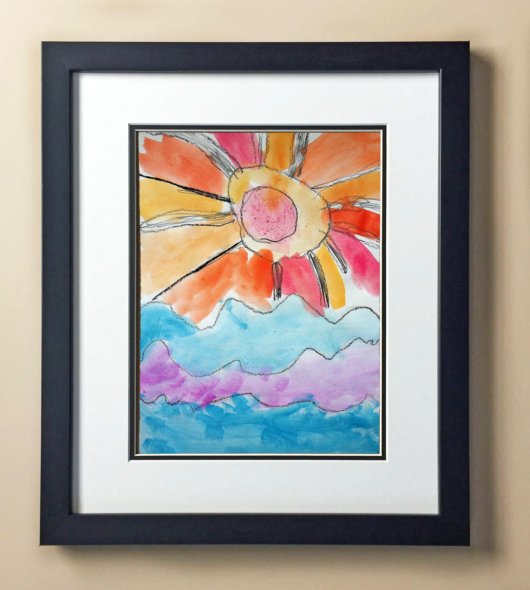 Included with the purchase is the Students Artwork, Frame, double matboard, shatter proof plexiglass, and a ready to hang backerboard with turnbuttons