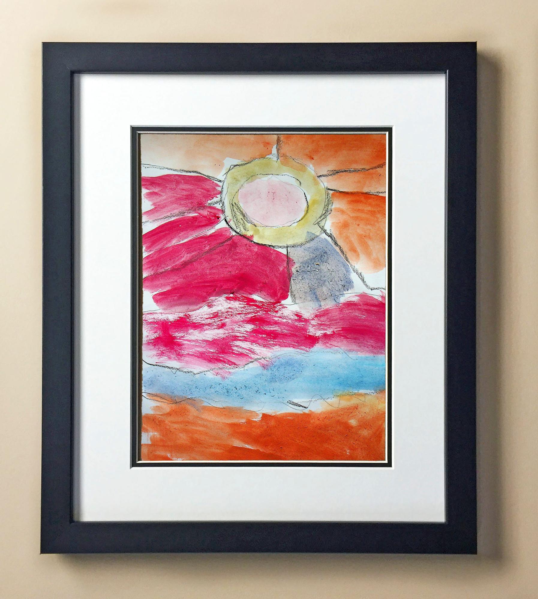 Included with the purchase is the Students Artwork, Frame, double matboard, shatter proof plexiglass, and a ready to hang backerboard with turnbuttons