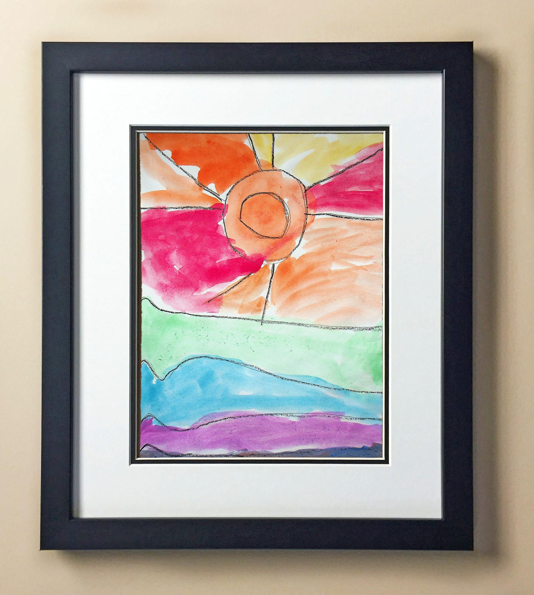 Included with the purchase is the Students Artwork, Frame, double matboard, shatter proof plexiglass, and a ready to hang backerboard with turnbuttons