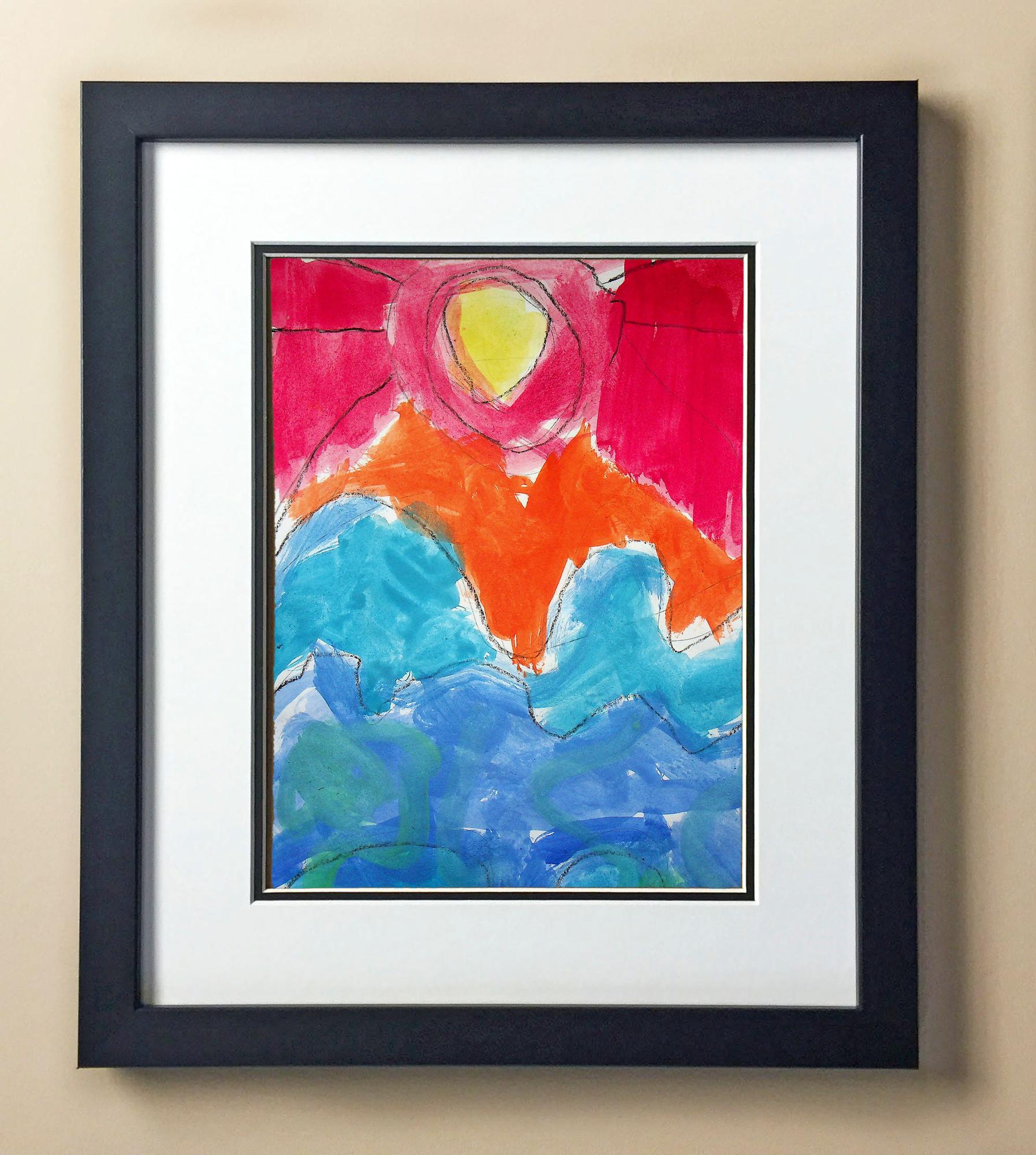 Included with the purchase is the Students Artwork, Frame, double matboard, shatter proof plexiglass, and a ready to hang backerboard with turnbuttons