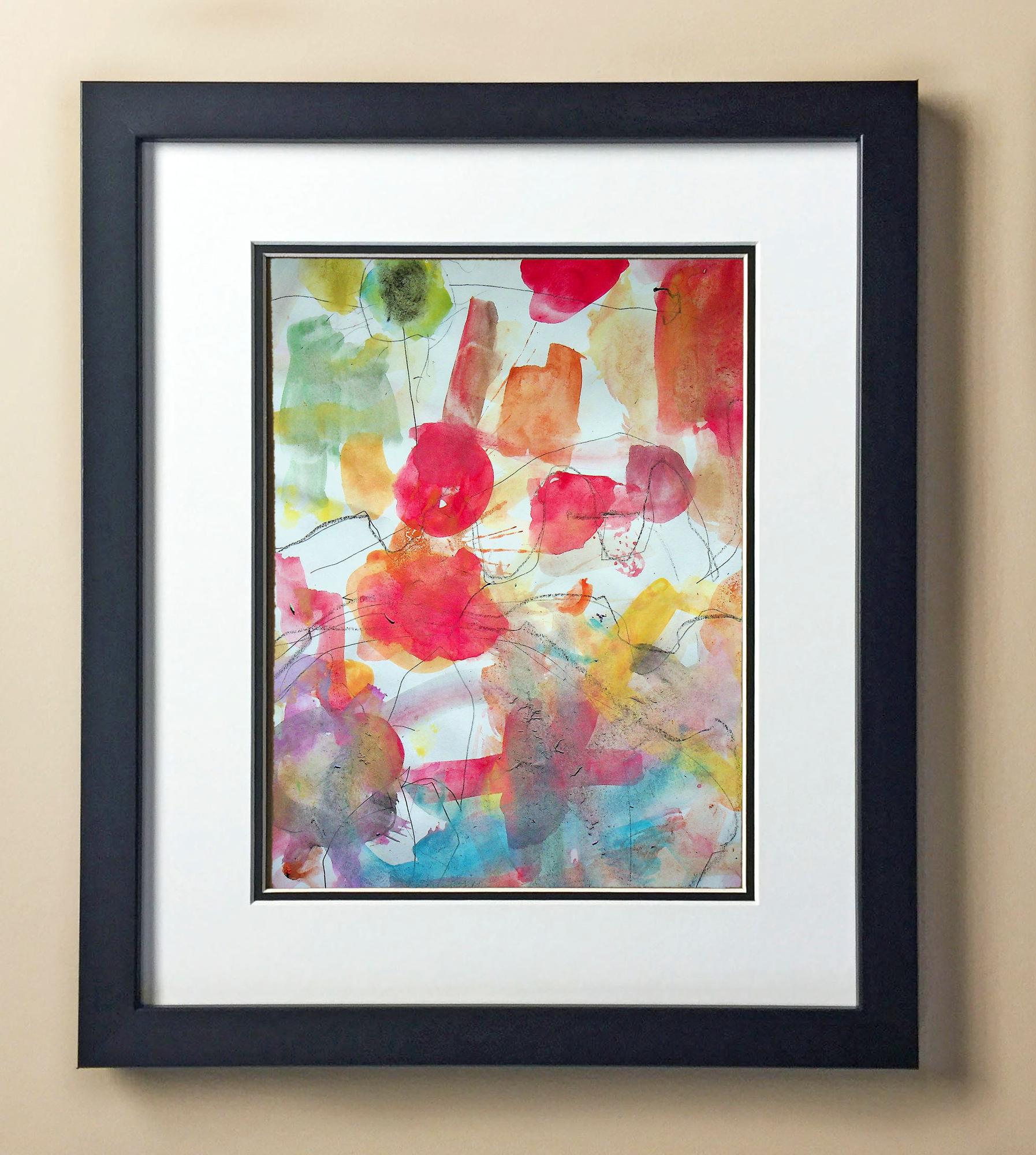 Included with the purchase is the Students Artwork, Frame, double matboard, shatter proof plexiglass, and a ready to hang backerboard with turnbuttons