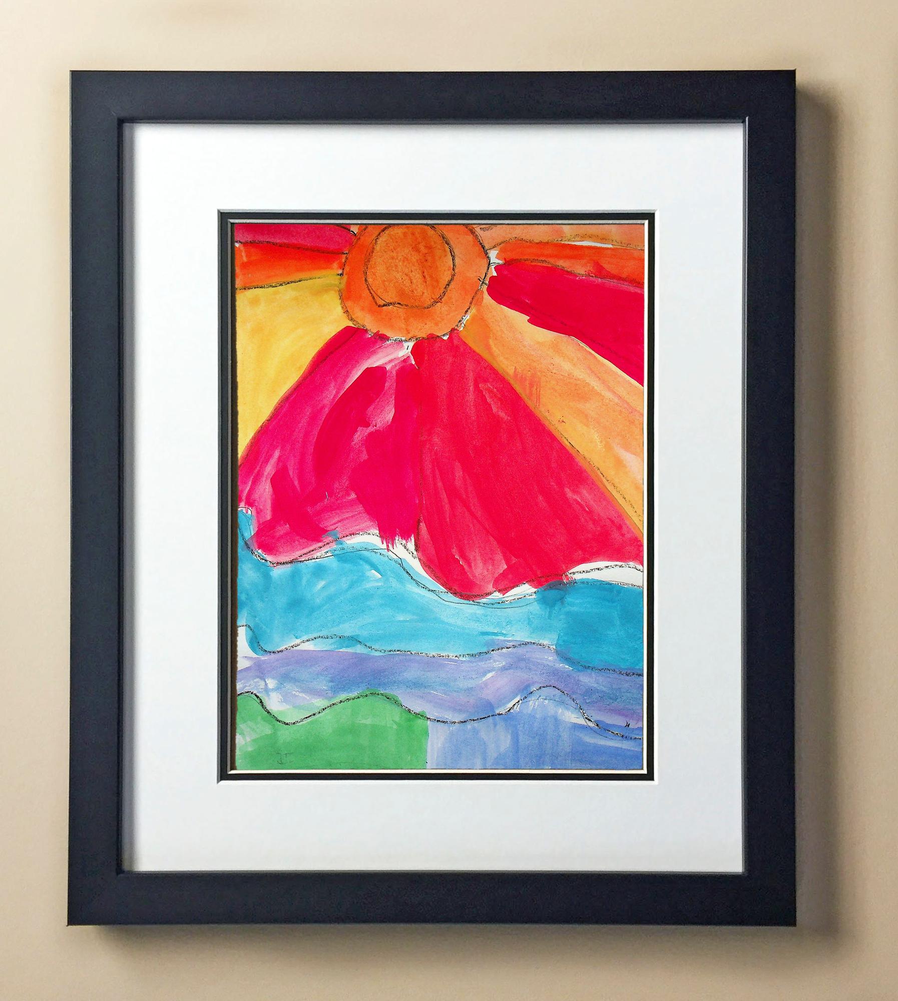 Included with the purchase is the Students Artwork, Frame, double matboard, shatter proof plexiglass, and a ready to hang backerboard with turnbuttons