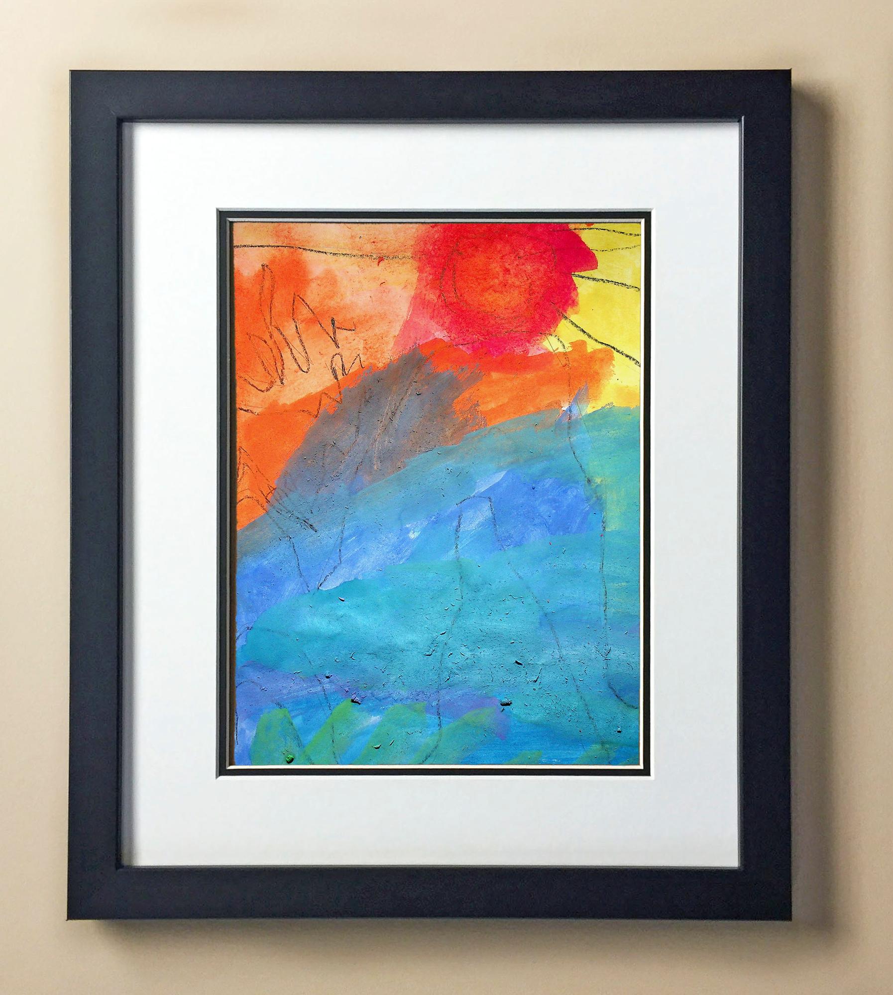 Included with the purchase is the Students Artwork, Frame, double matboard, shatter proof plexiglass, and a ready to hang backerboard with turnbuttons