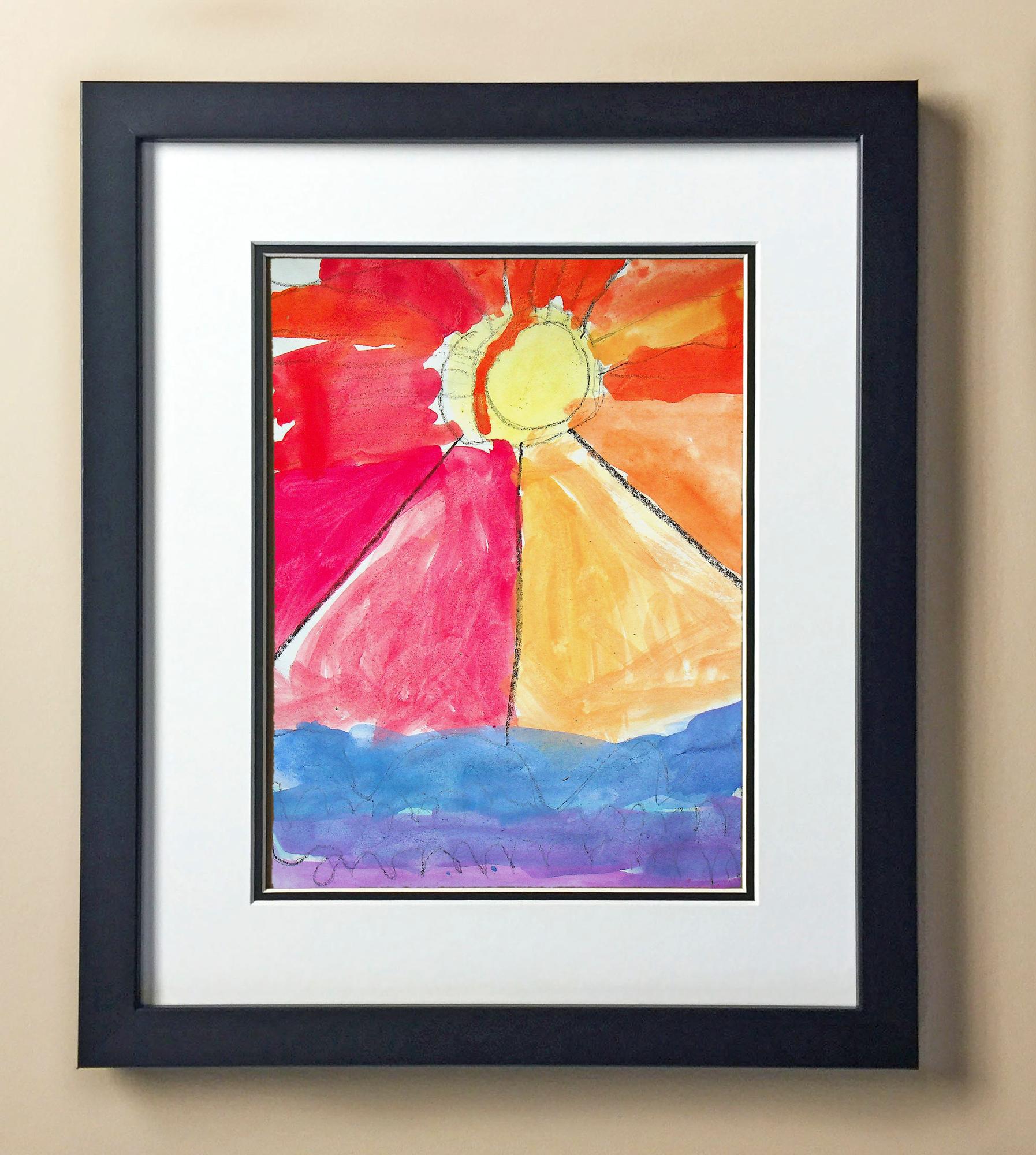 Included with the purchase is the Students Artwork, Frame, double matboard, shatter proof plexiglass, and a ready to hang backerboard with turnbuttons