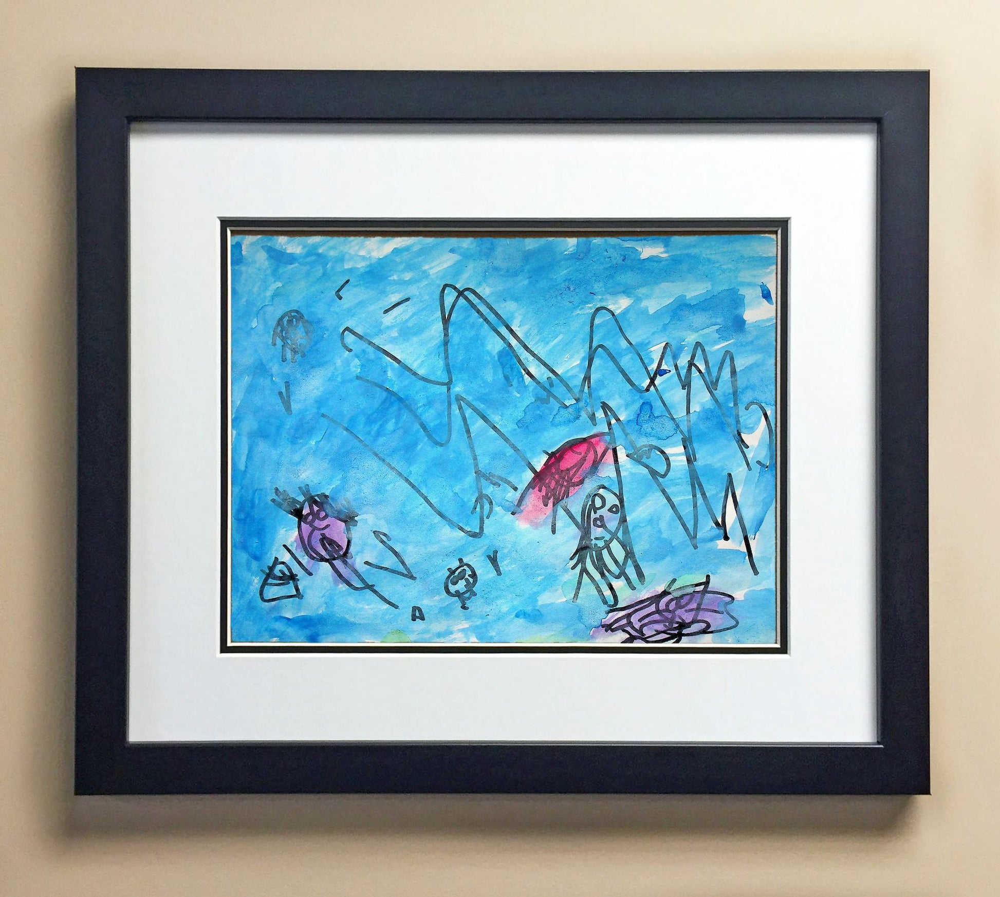 Included with the purchase is the Students Artwork, Frame, double matboard, shatter proof plexiglass, and a ready to hang backerboard with turnbuttons