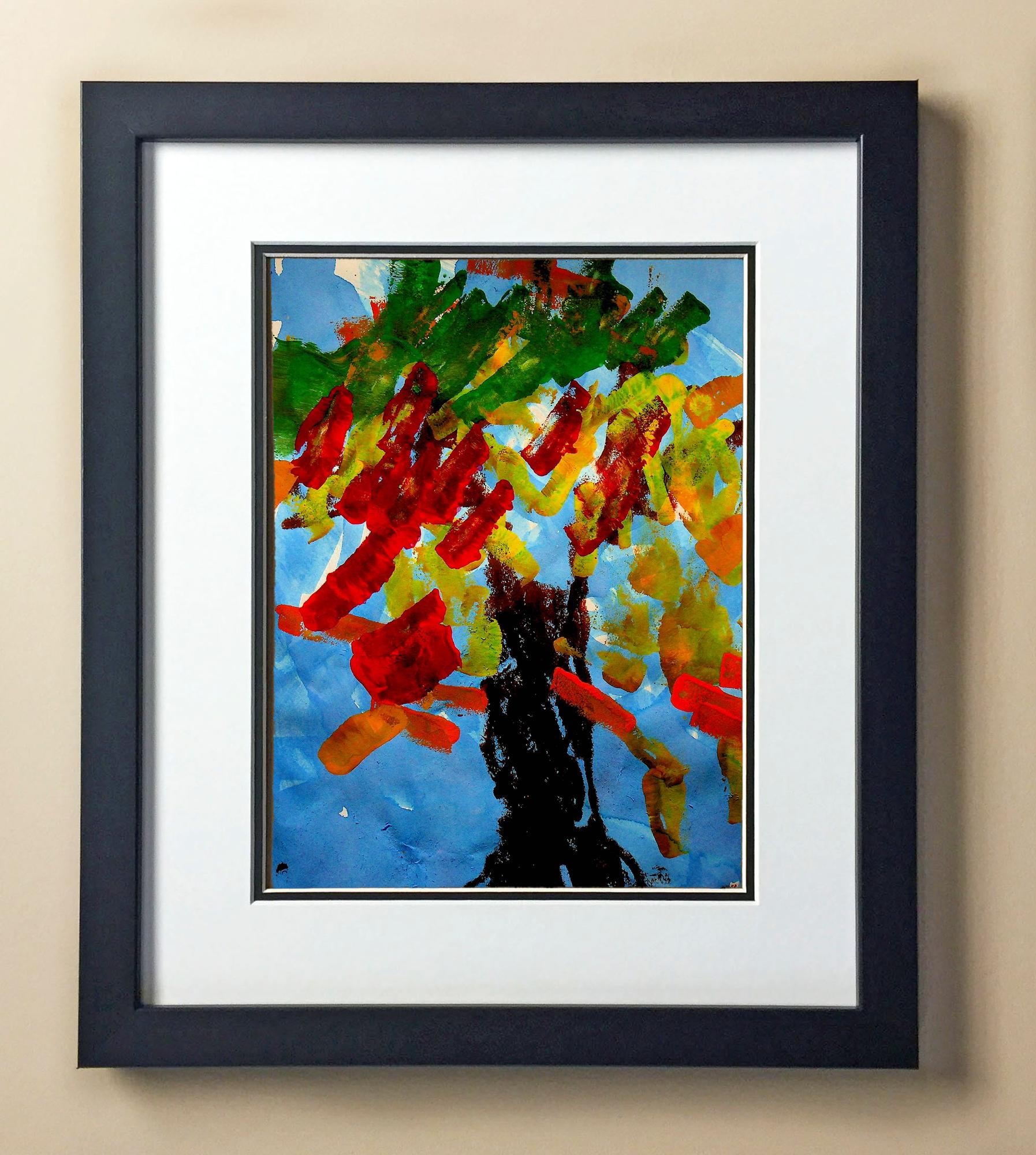Included with the purchase is the Students Artwork, Frame, double matboard, shatter proof plexiglass, and a ready to hang backerboard with turnbuttons