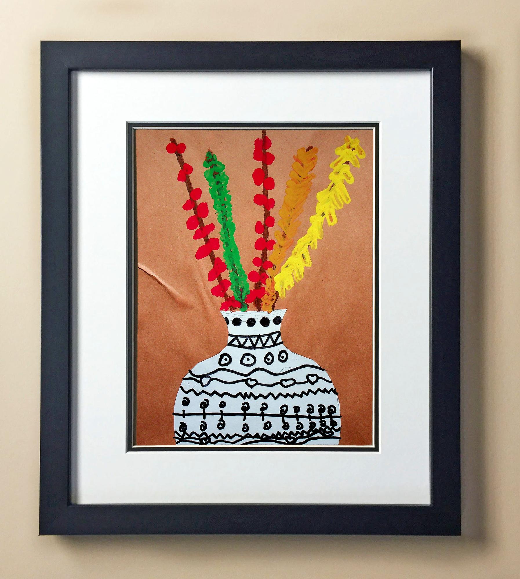 Included with the purchase is the Students Artwork, Frame, double matboard, shatter proof plexiglass, and a ready to hang backerboard with turnbuttons