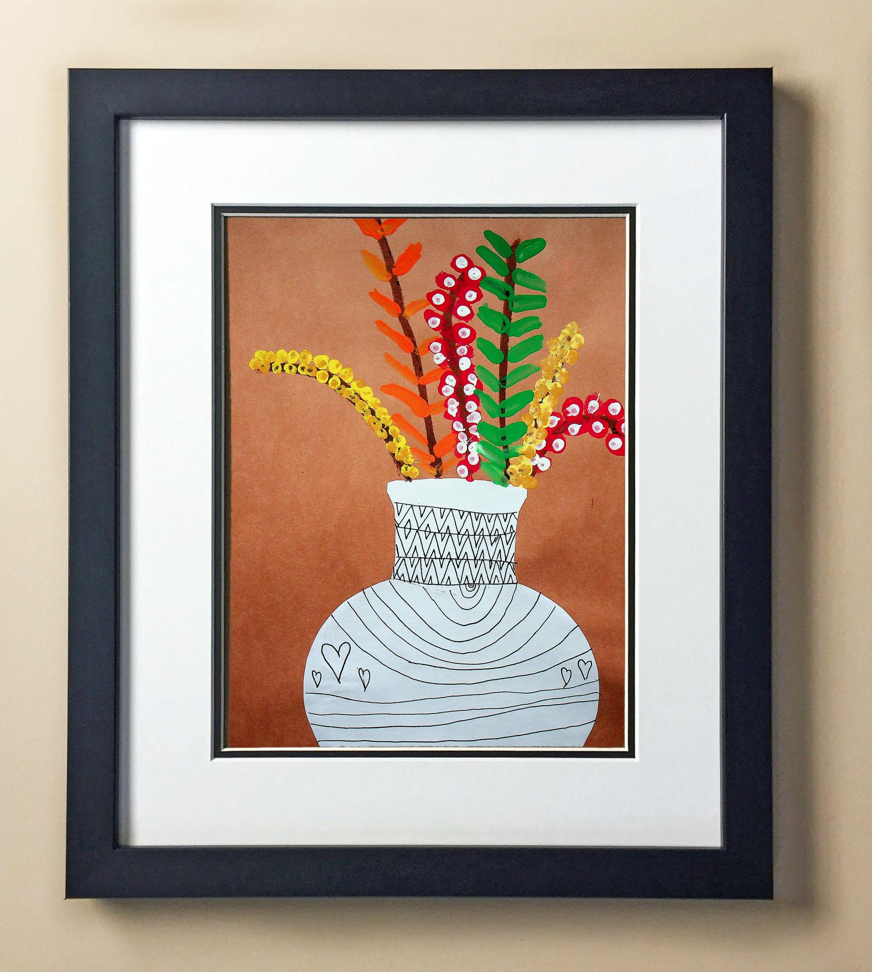 Included with the purchase is the Students Artwork, Frame, double matboard, shatter proof plexiglass, and a ready to hang backerboard with turnbuttons