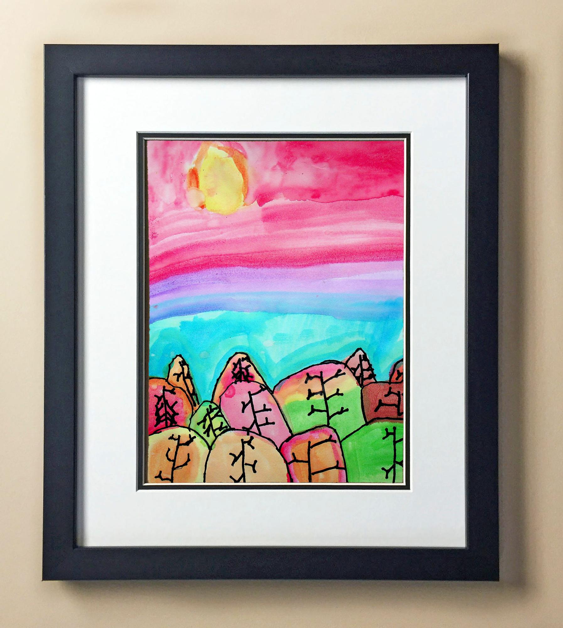 Included with the purchase is the Students Artwork, Frame, double matboard, shatter proof plexiglass, and a ready to hang backerboard with turnbuttons