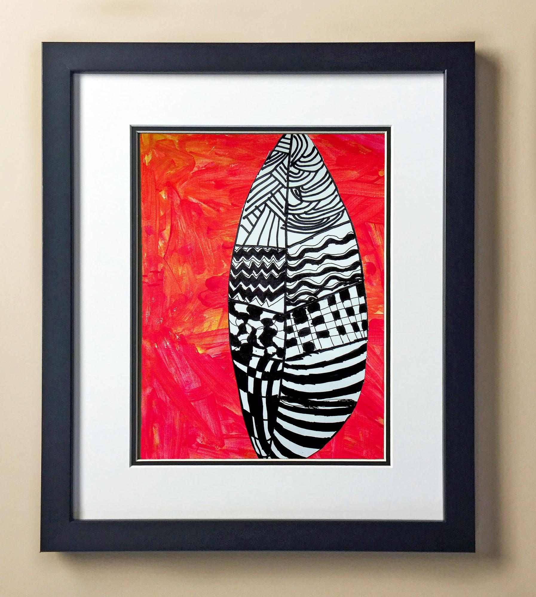 Included with the purchase is the Students Artwork, Frame, double matboard, shatter proof plexiglass, and a ready to hang backerboard with turnbuttons