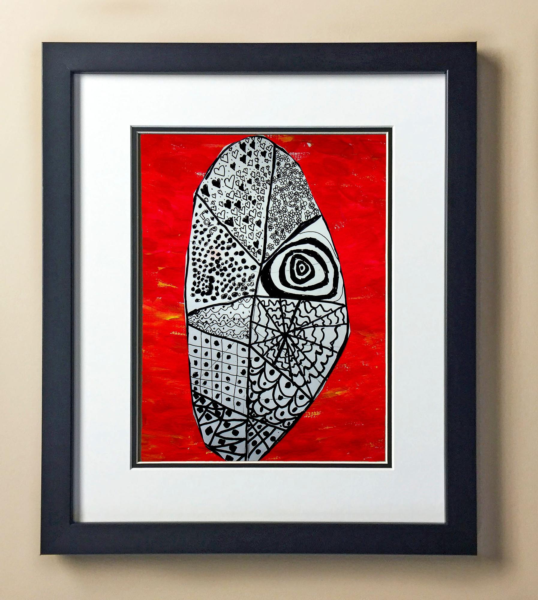 Included with the purchase is the Students Artwork, Frame, double matboard, shatter proof plexiglass, and a ready to hang backerboard with turnbuttons