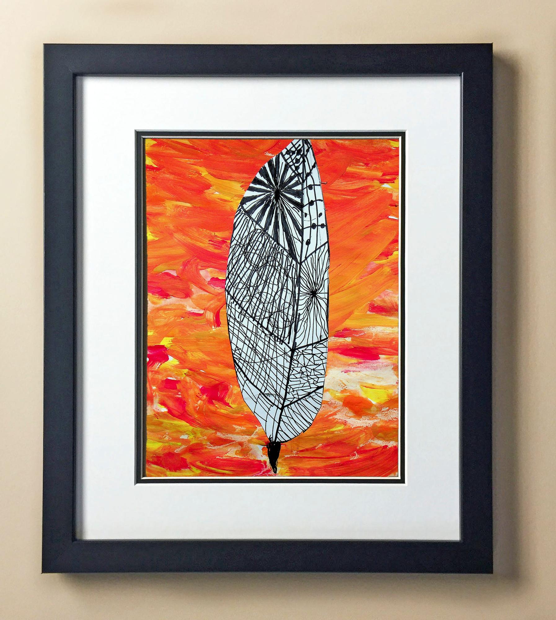 Included with the purchase is the Students Artwork, Frame, double matboard, shatter proof plexiglass, and a ready to hang backerboard with turnbuttons